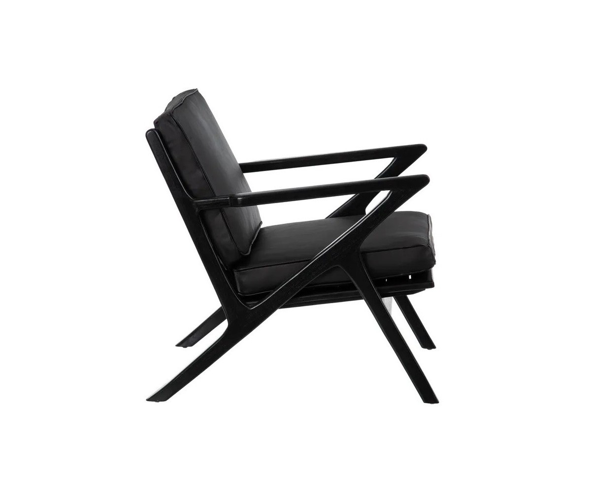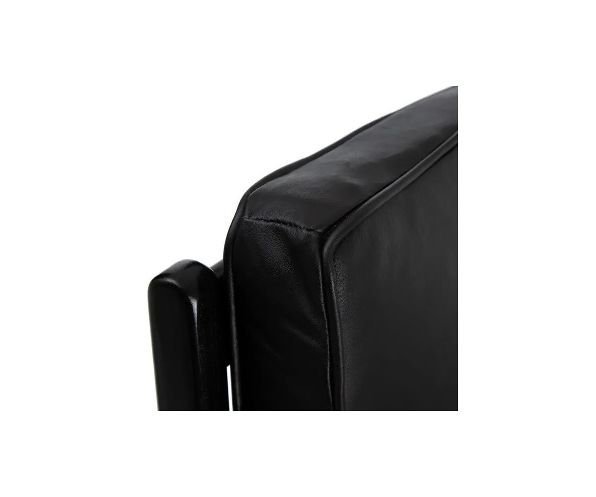 Butaca Mid Century inspirada en un diseño de Poul Jensen. Estructura fabricada en madera de teca y tratada, lacada en color negro. Asiento y respaldo confeccionado en espuma de poliuretano indeformable, tapizado en piel color negro de alta calidad. Réplica con materiales originales de máxima calidad.