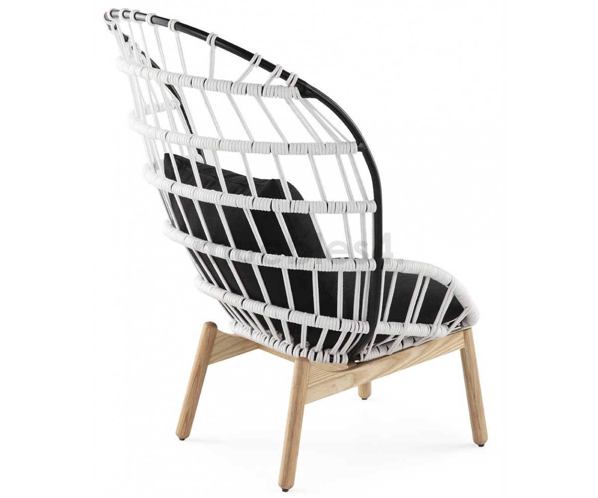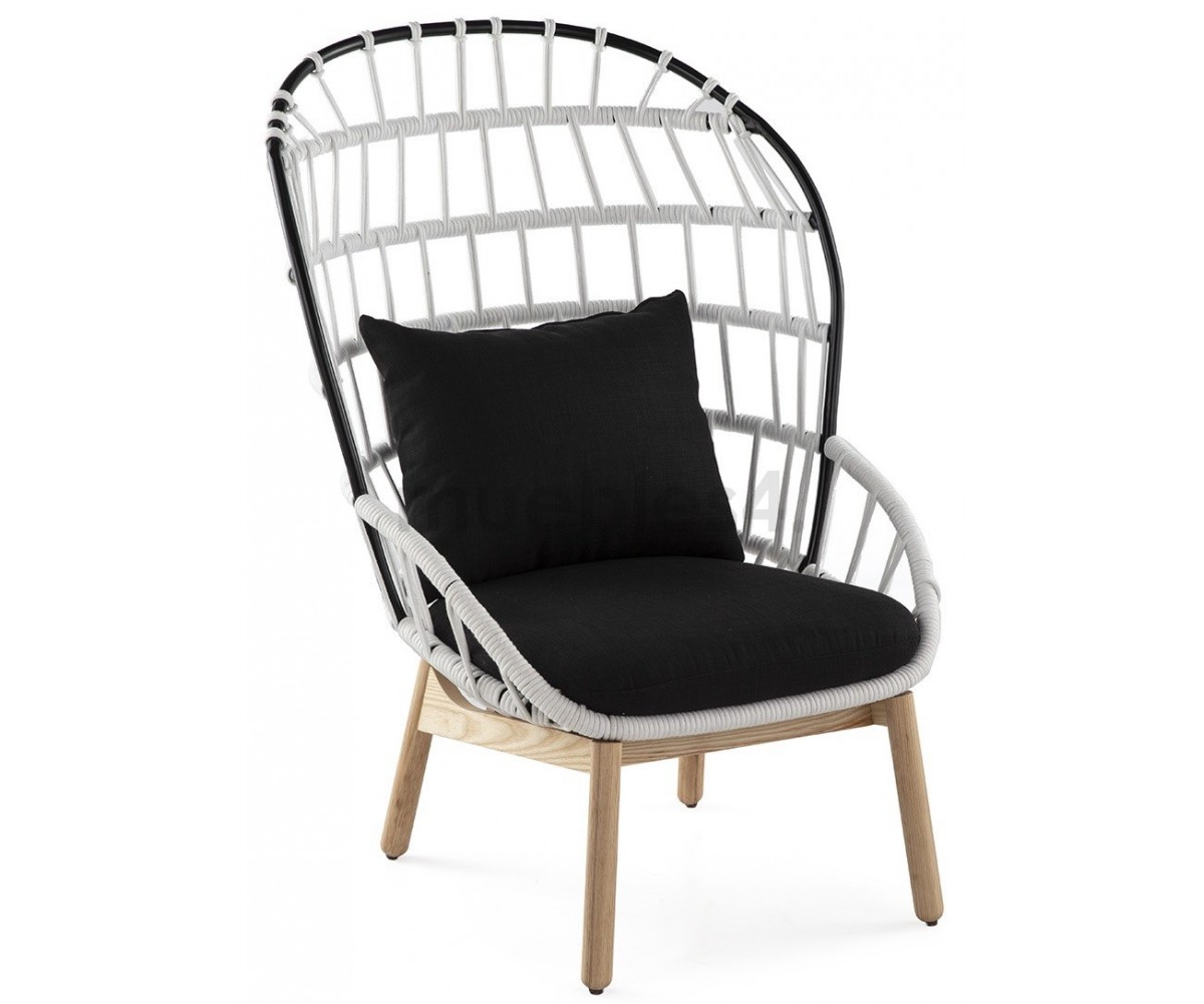 Butaca inspirada en un diseño de Doshi Levien. Cala es un sillón de respaldo alto inspirado en el icónico Emmanuelle. Las superficies ligeras y transparentes le confieren una presencia majestuosa. El tejido abierto de cuerda hace las veces de una celosía, que aporta privacidad visual al tiempo que mantiene una conexión con los elementos naturales.