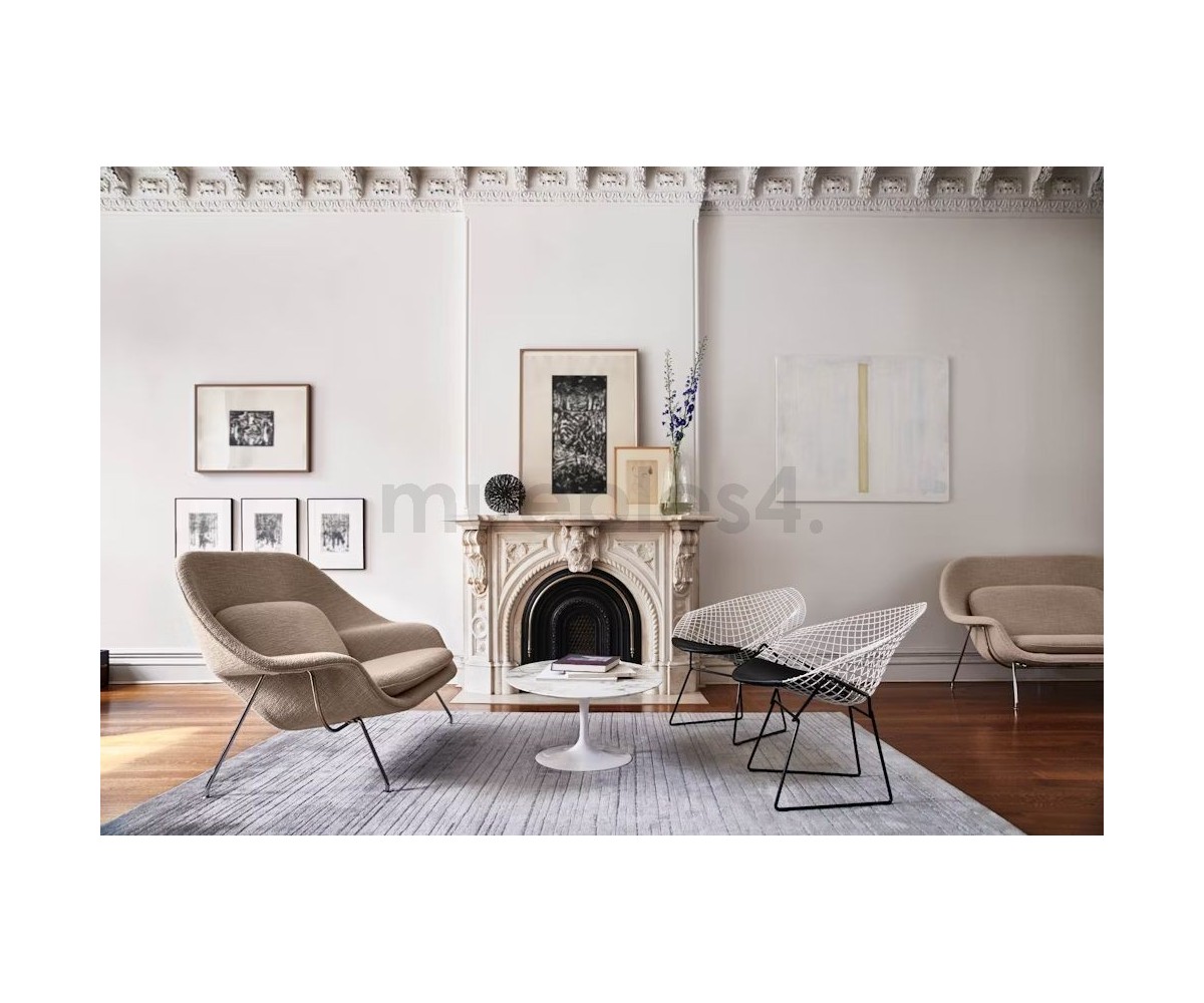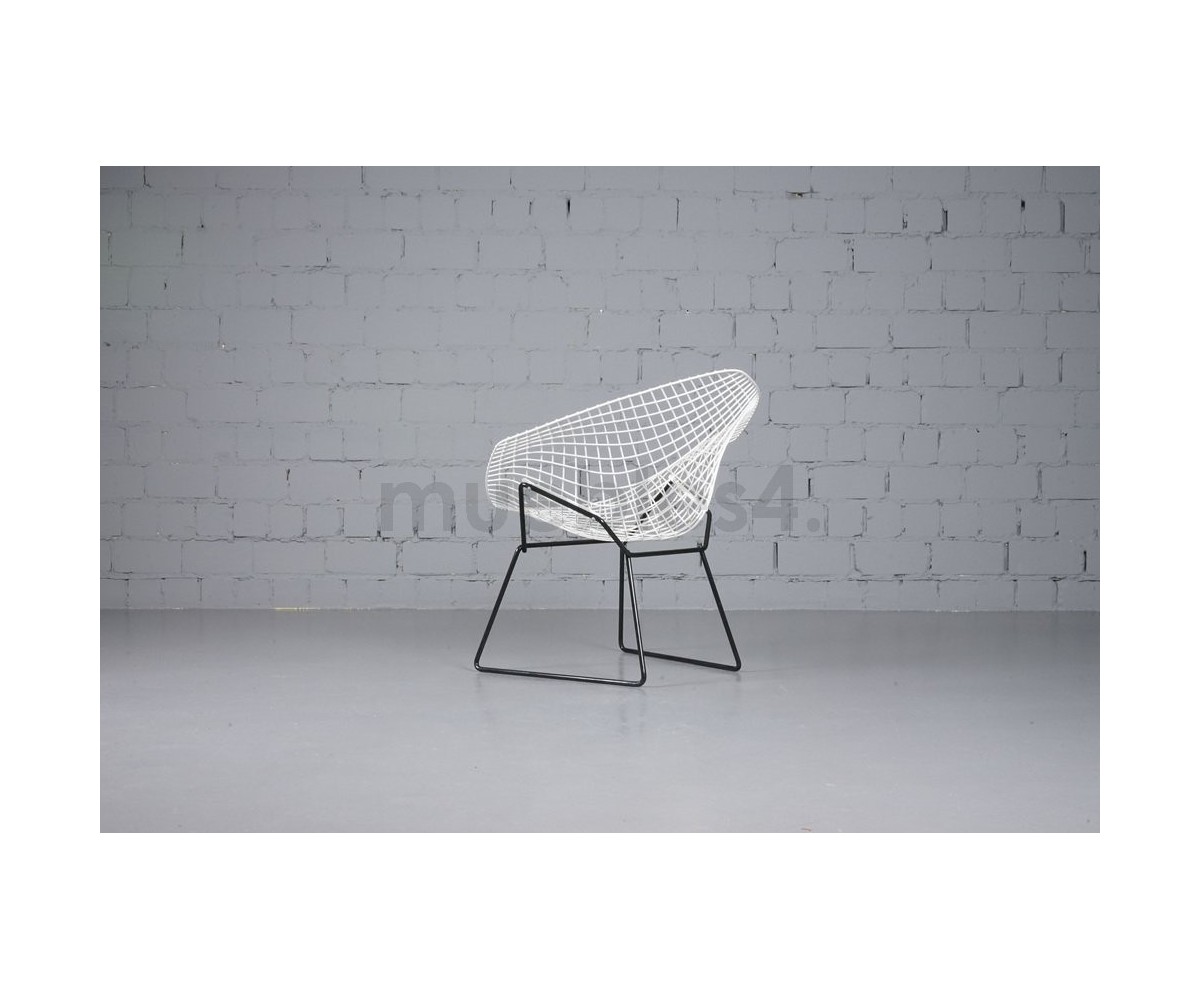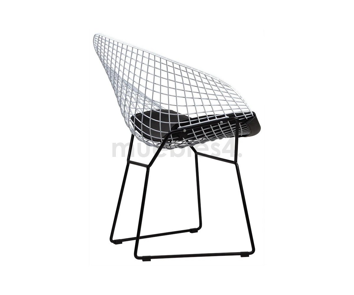 Sillón inspirado en un diseño de Harry Bertoia. Estudio sublime del espacio, la forma y la función de uno de los maestros escultores del siglo pasado. Al igual que Eero Saarinen y Mies van der Rohe, Bertoia encontró la gracia elegante en un material industrial, elevándolo más allá de su utilidad normal hasta convertirlo en una obra de arte.