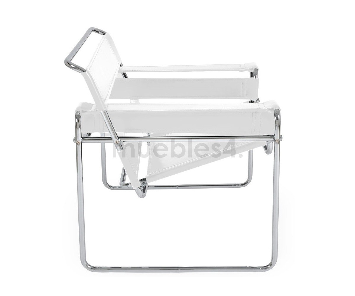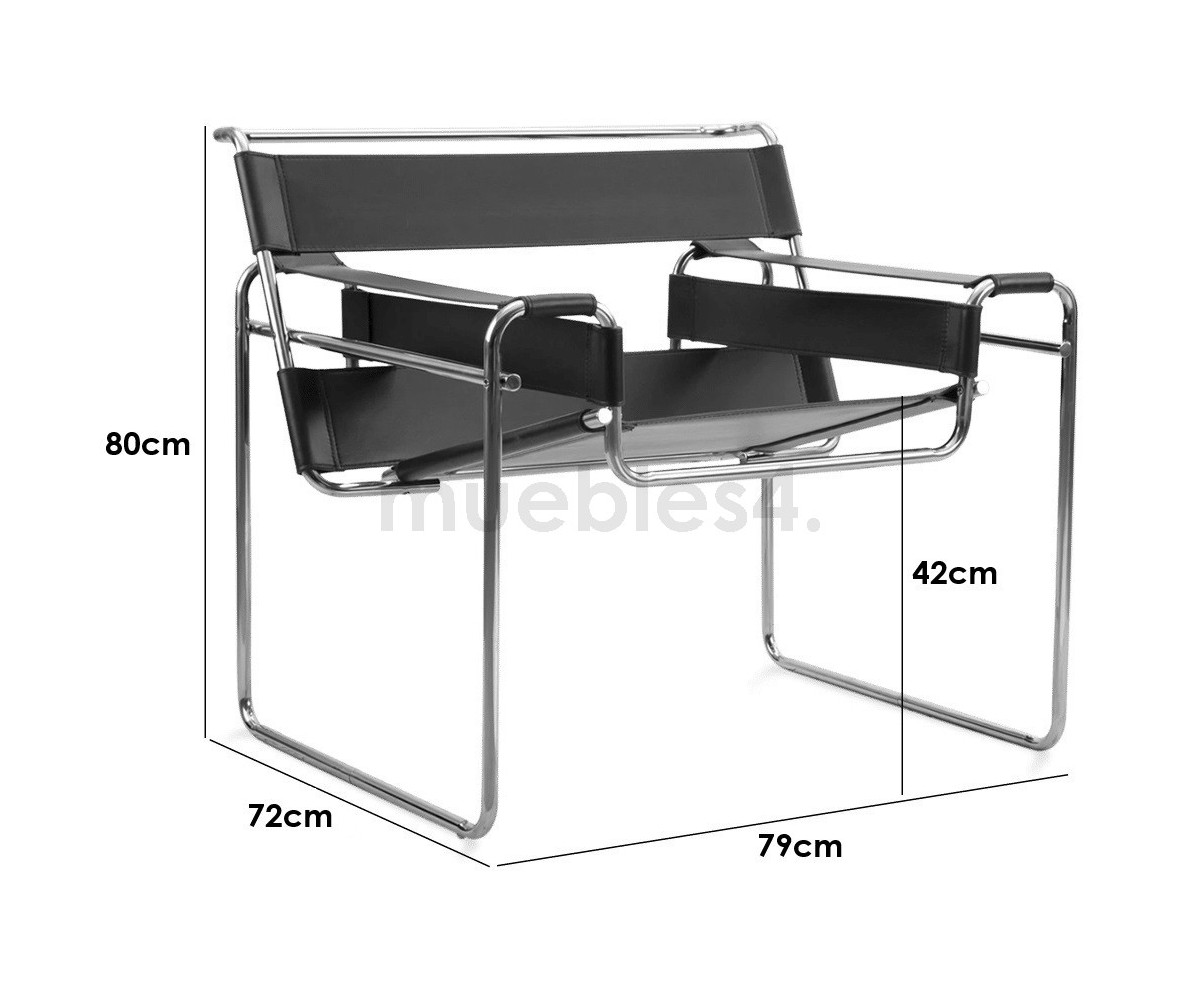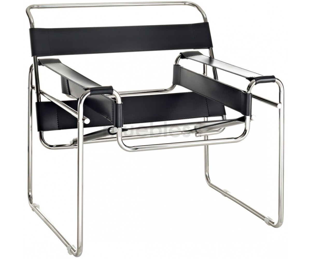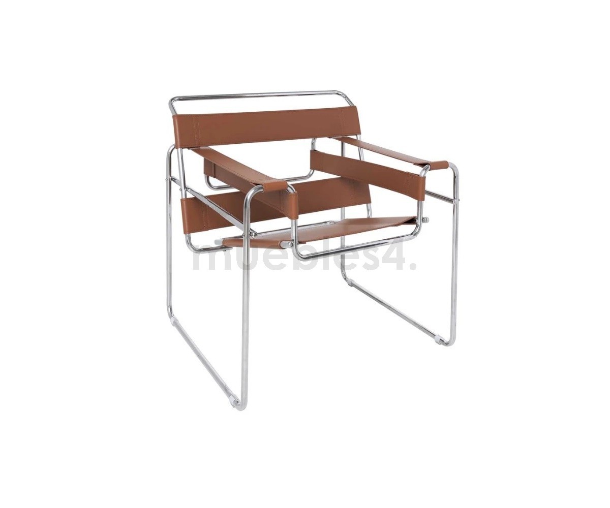 Sillón inspirado en un diseño de Marcel Breuer para Knoll. Marcel Breuer era aprendiz en la Bauhaus cuando comenzó a experimentar con tubos de acero como forma de construir una silla más transparente. Inspirándose en el cuadro de una bicicleta e influenciado por las teorías constructivistas del movimiento De Stjil, Breuer redujo la forma del clásico sillón club a sus líneas y planos elementales.