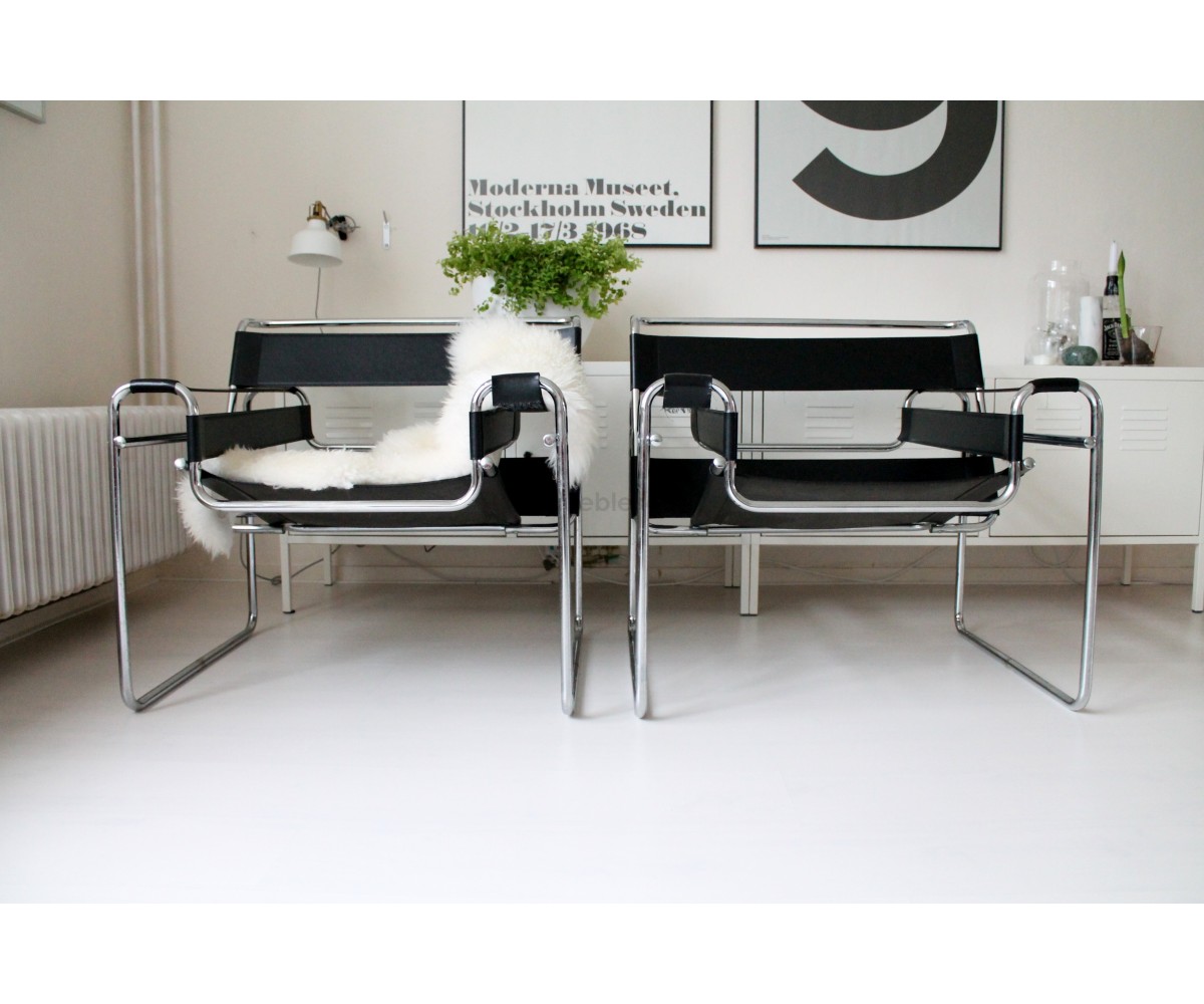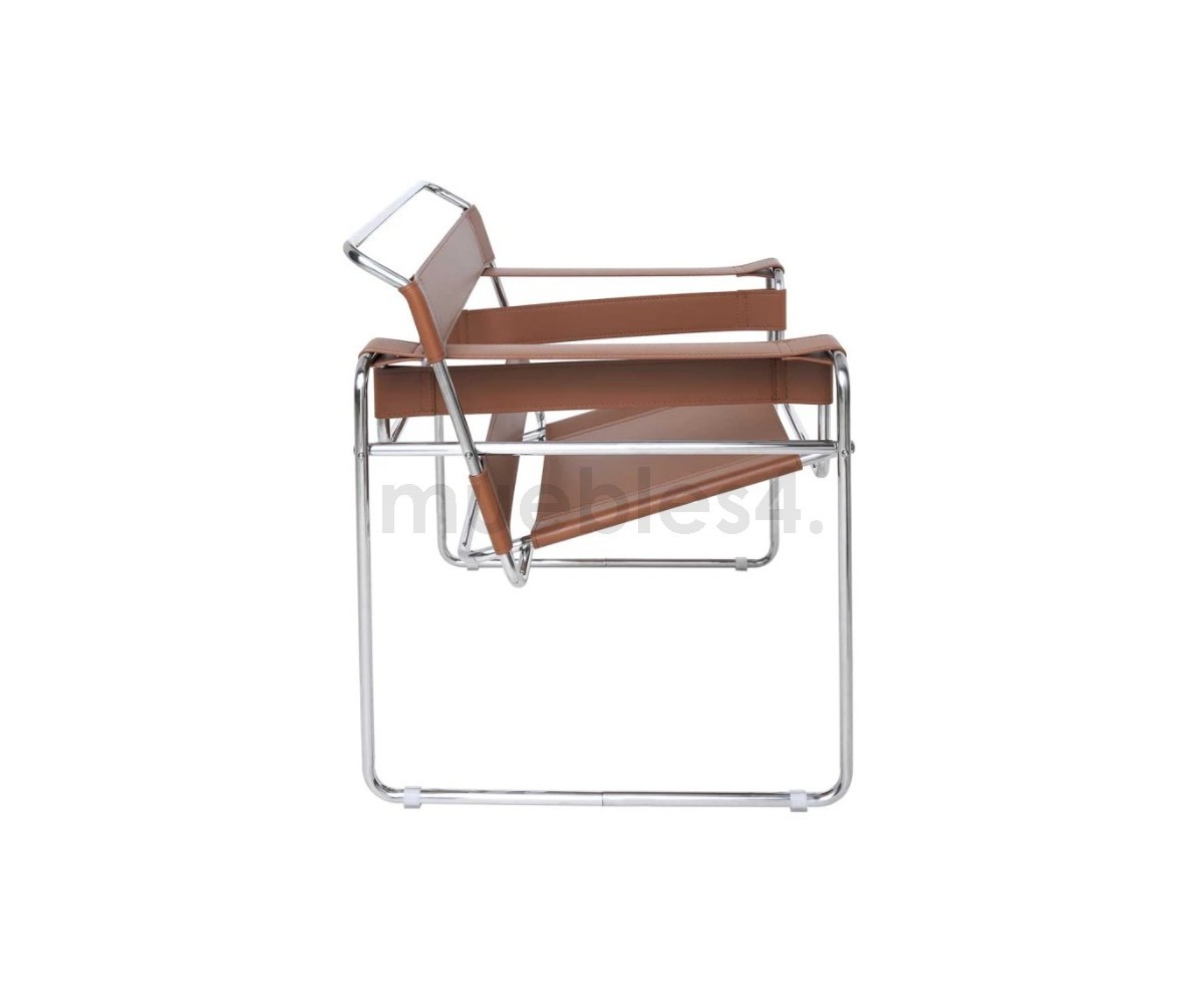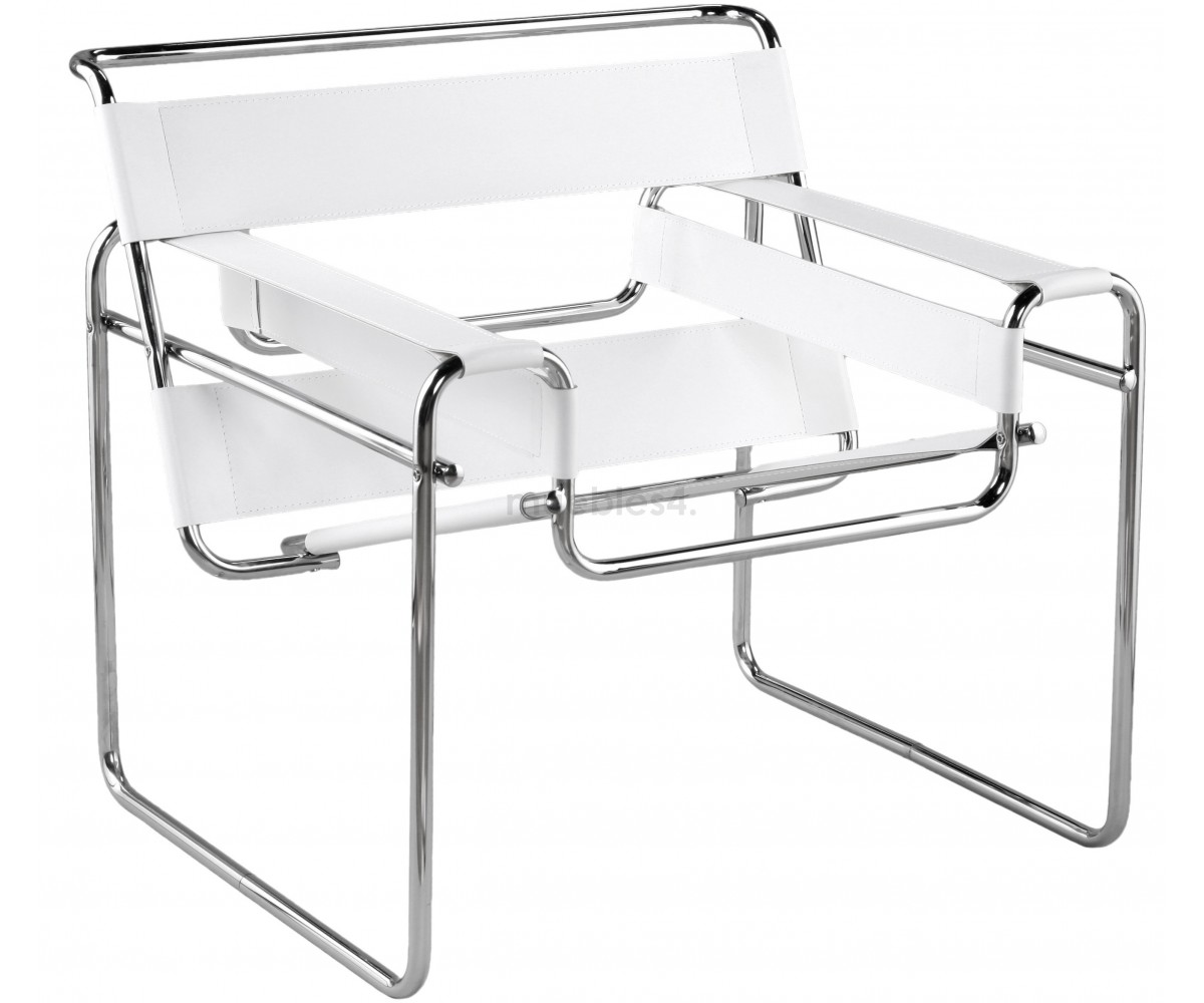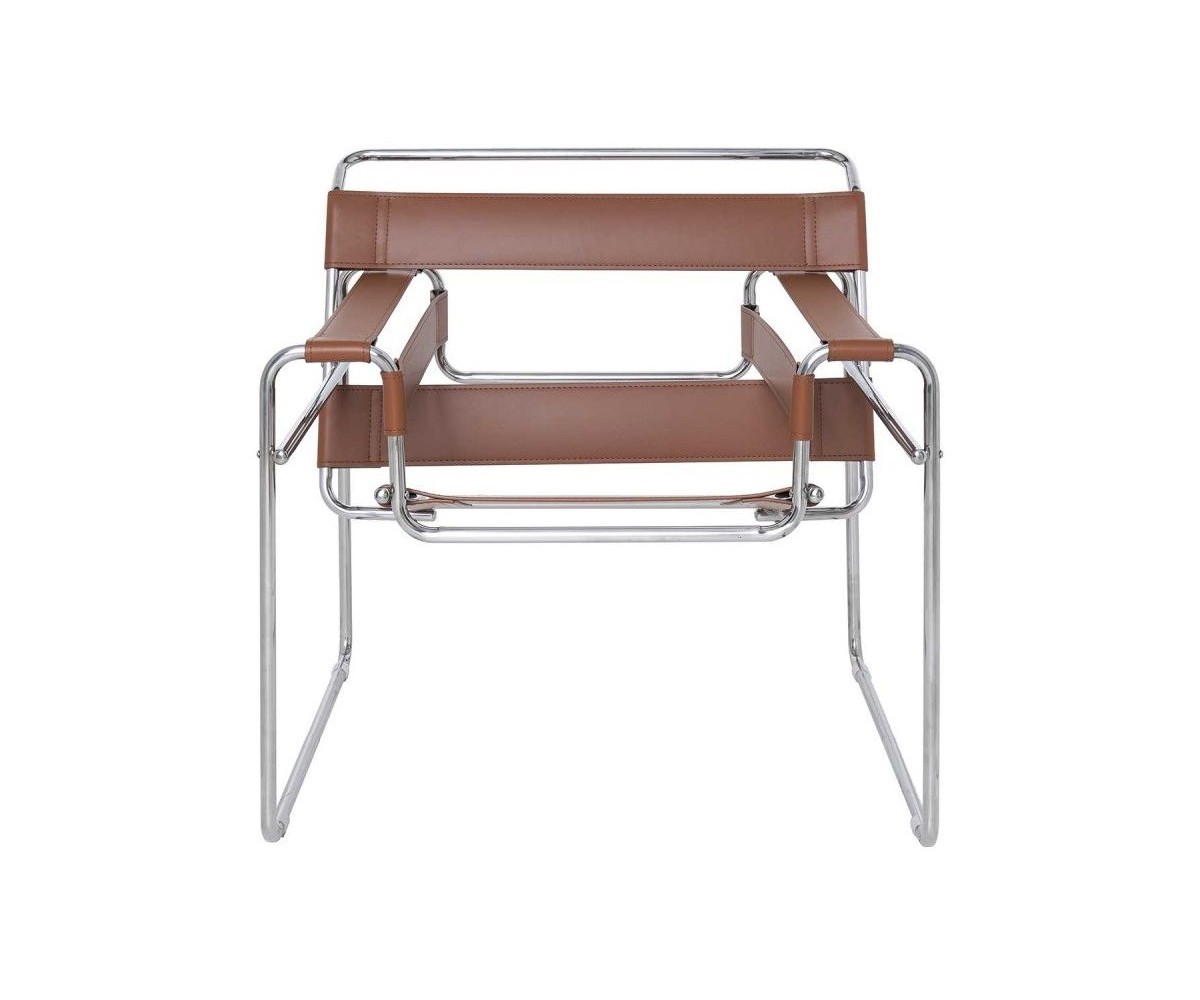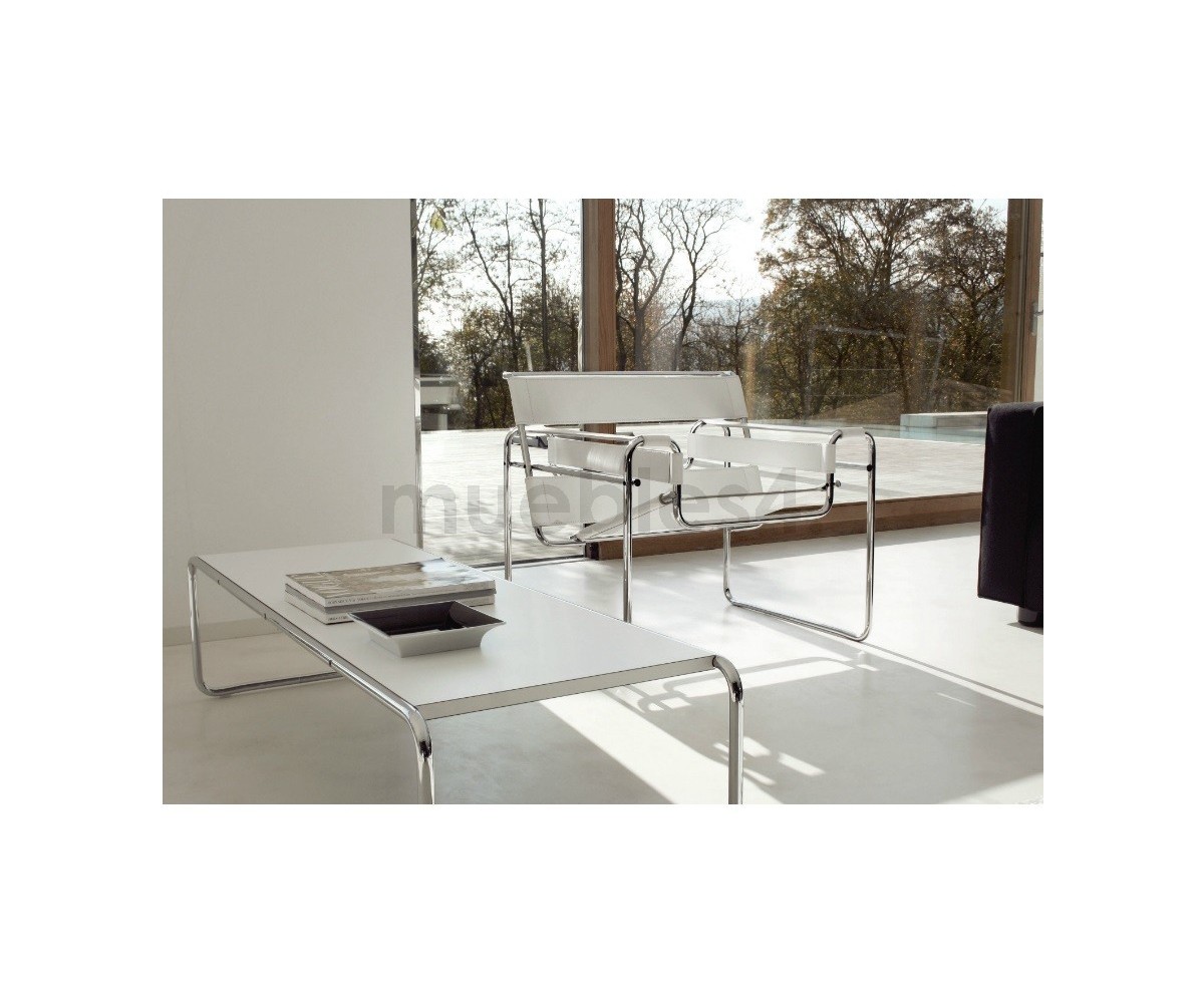 Sillón inspirado en un diseño de Marcel Breuer para Knoll. Marcel Breuer era aprendiz en la Bauhaus cuando comenzó a experimentar con tubos de acero como forma de construir una silla más transparente. Inspirándose en el cuadro de una bicicleta e influenciado por las teorías constructivistas del movimiento De Stjil, Breuer redujo la forma del clásico sillón club a sus líneas y planos elementales.