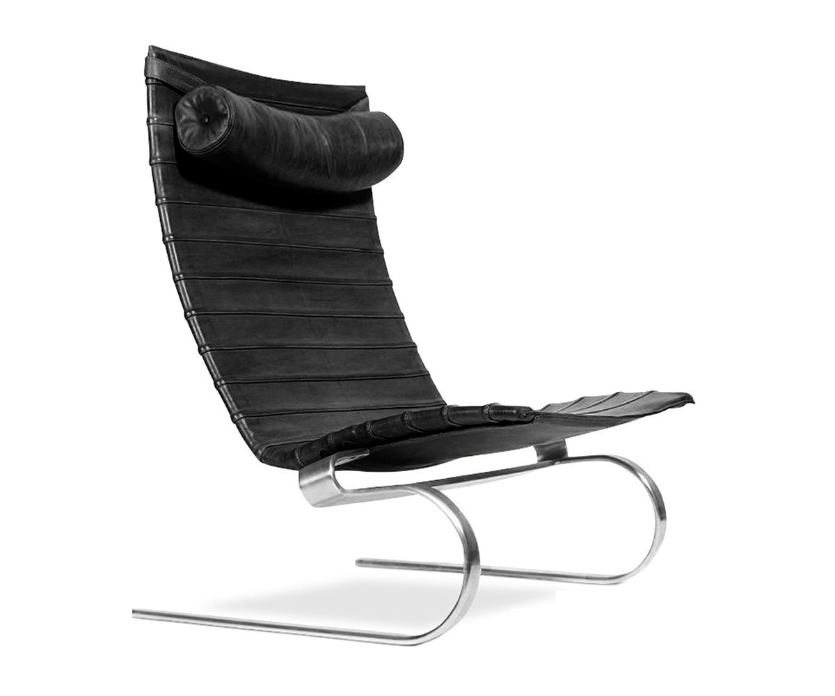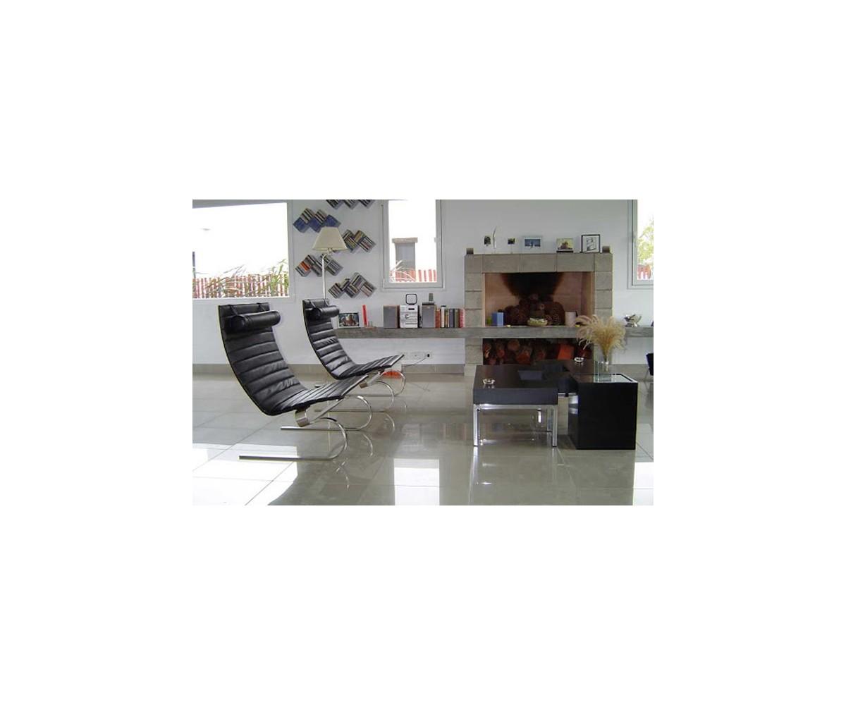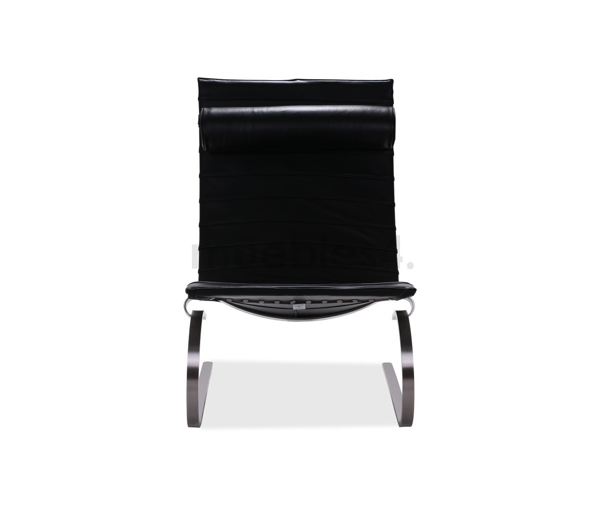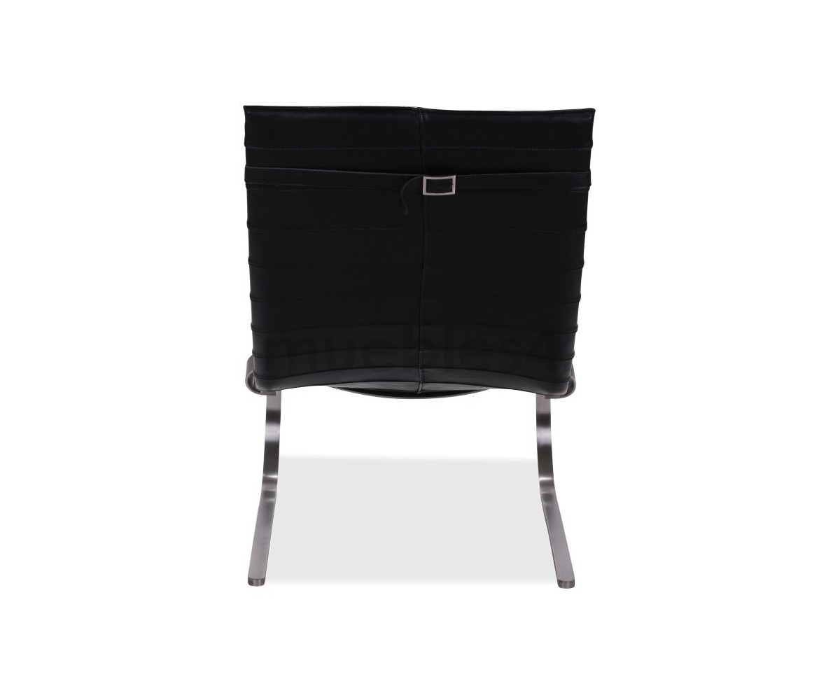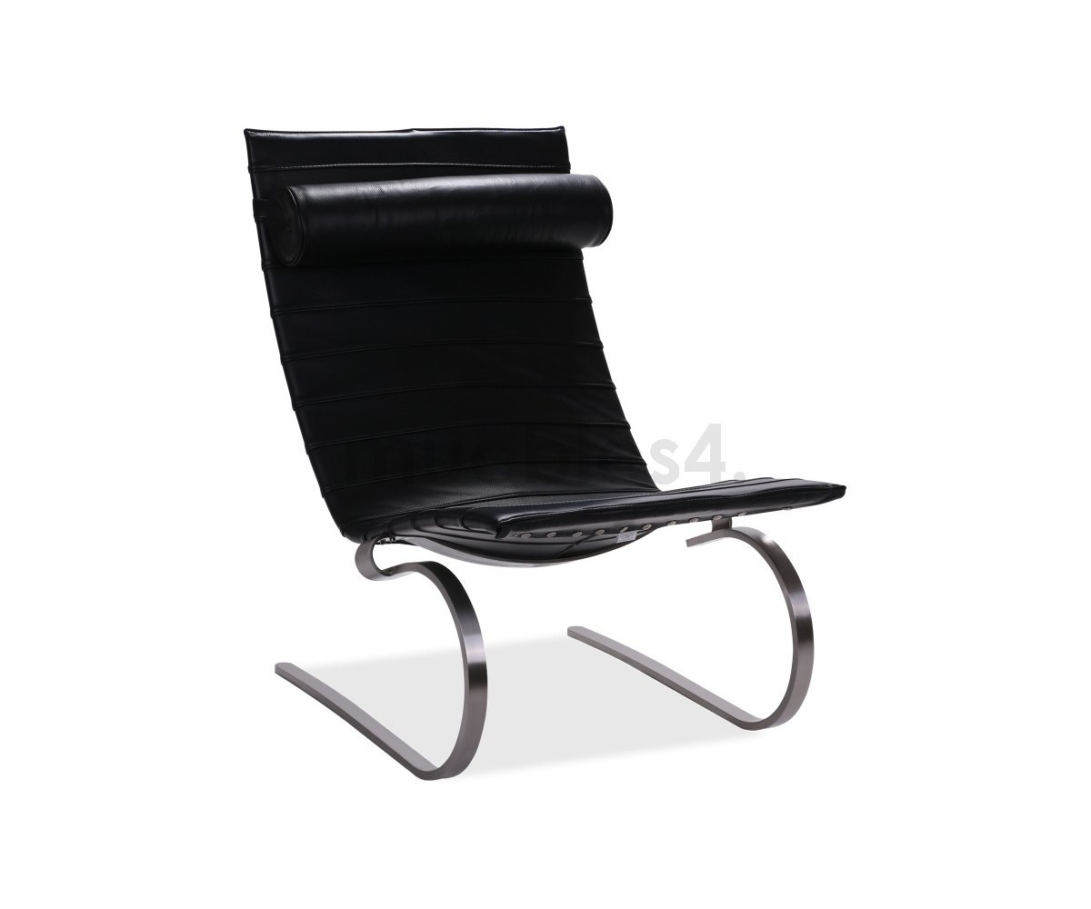 Sillón inspirado en un diseño de Poul Kjaerholm. Base realizada en pletina de acero curvado terminación plata, tapizada en PIEL ITALIANA de máxima calidad. Color disponible blanco o negro, opción de color marrón y rojo. Réplica exacta con materiales originales de máxima calidad.