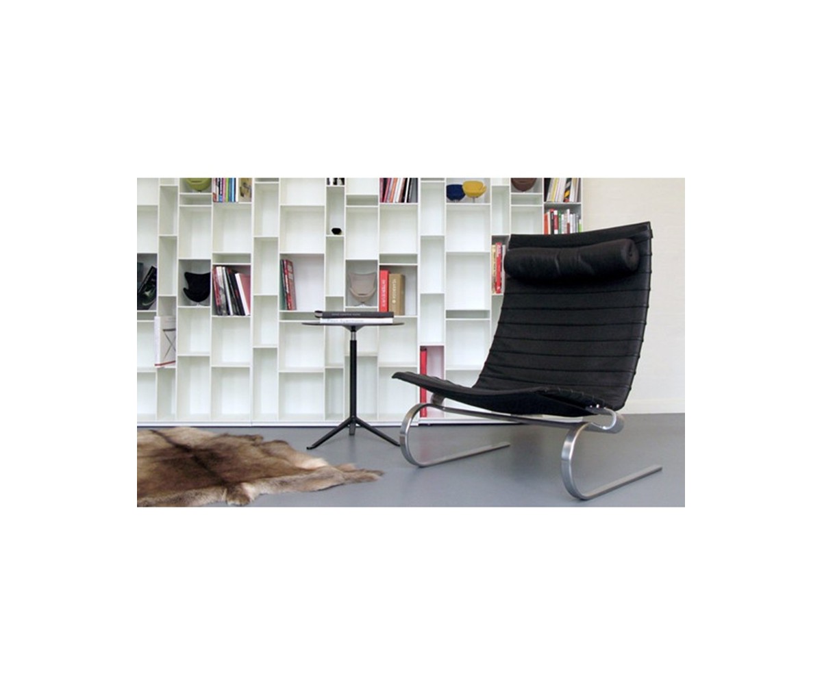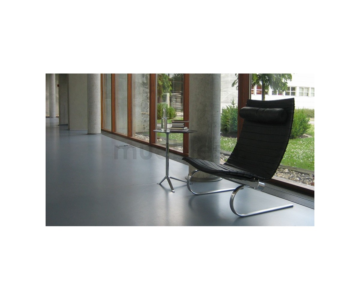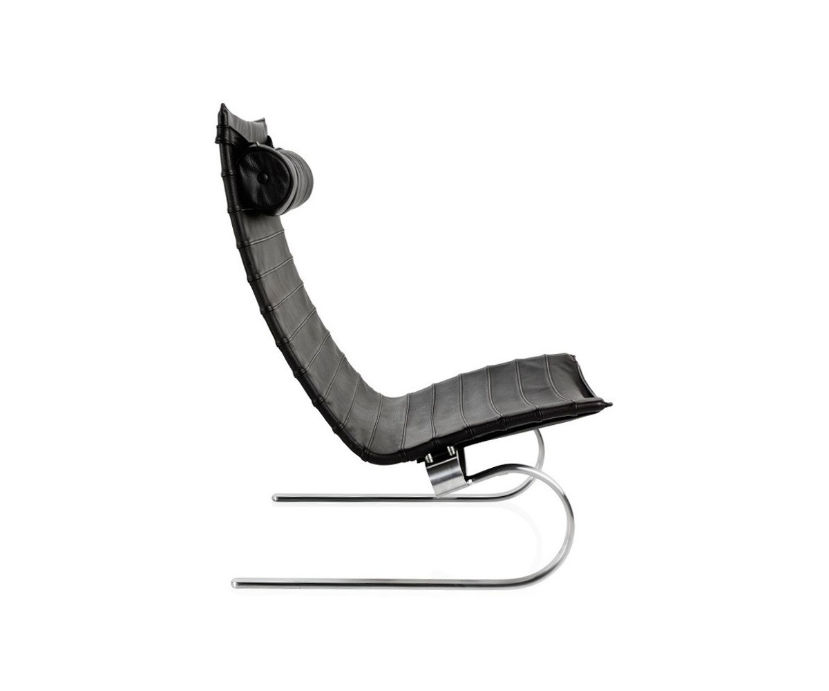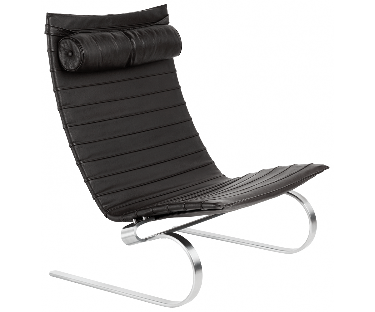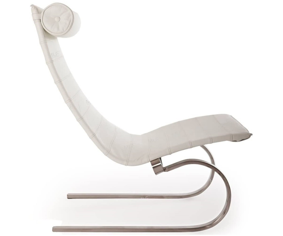 Sillón inspirado en un diseño de Poul Kjaerholm. Base realizada en pletina de acero curvado terminación plata, tapizada en PIEL ITALIANA de máxima calidad. Color disponible blanco o negro, opción de color marrón y rojo. Réplica exacta con materiales originales de máxima calidad.