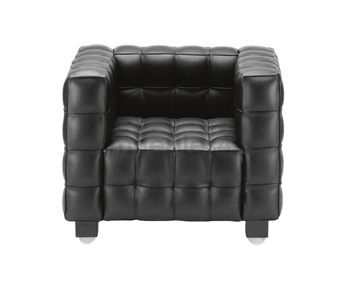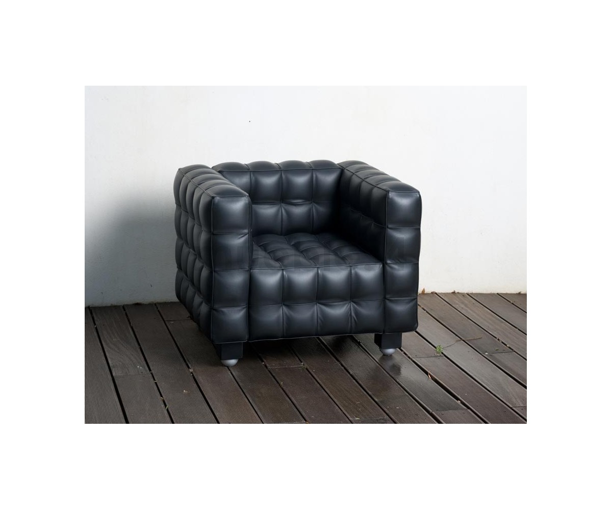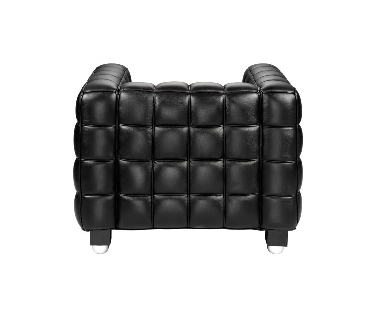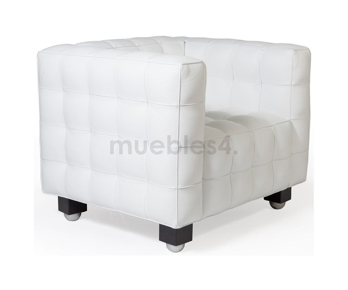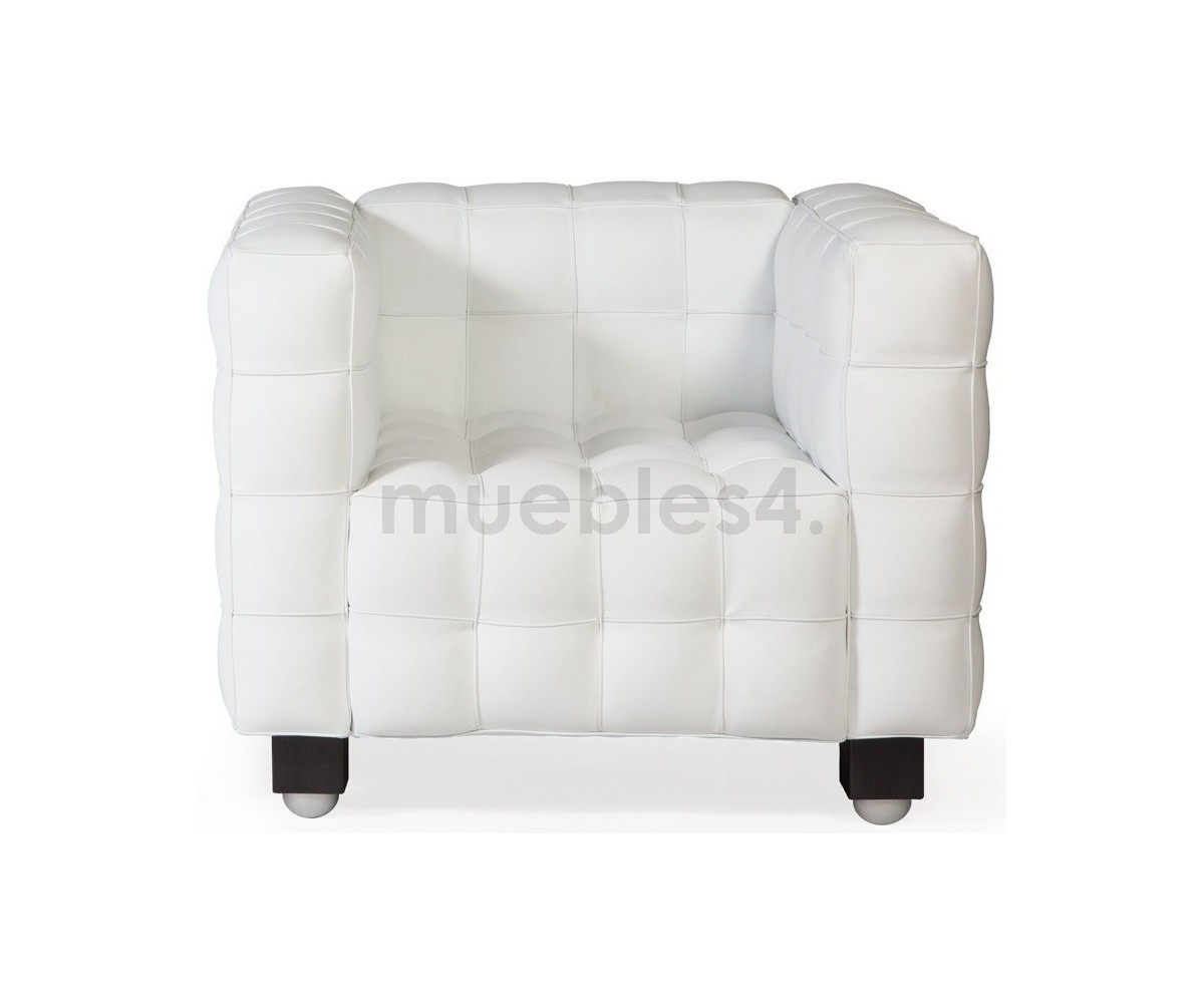 Sillón de 1 plaza inspirado en un diseño de Josef Hoffman. Armazón fabricado en madera de roble con espuma de poliuretano de alta resistencia, durabilidad y indeformable, tapizado en piel ecológica color negro o blanco. Disponible en sofá de 3 y 2 plazas. Réplica exacta con materiales originales de máxima calidad.