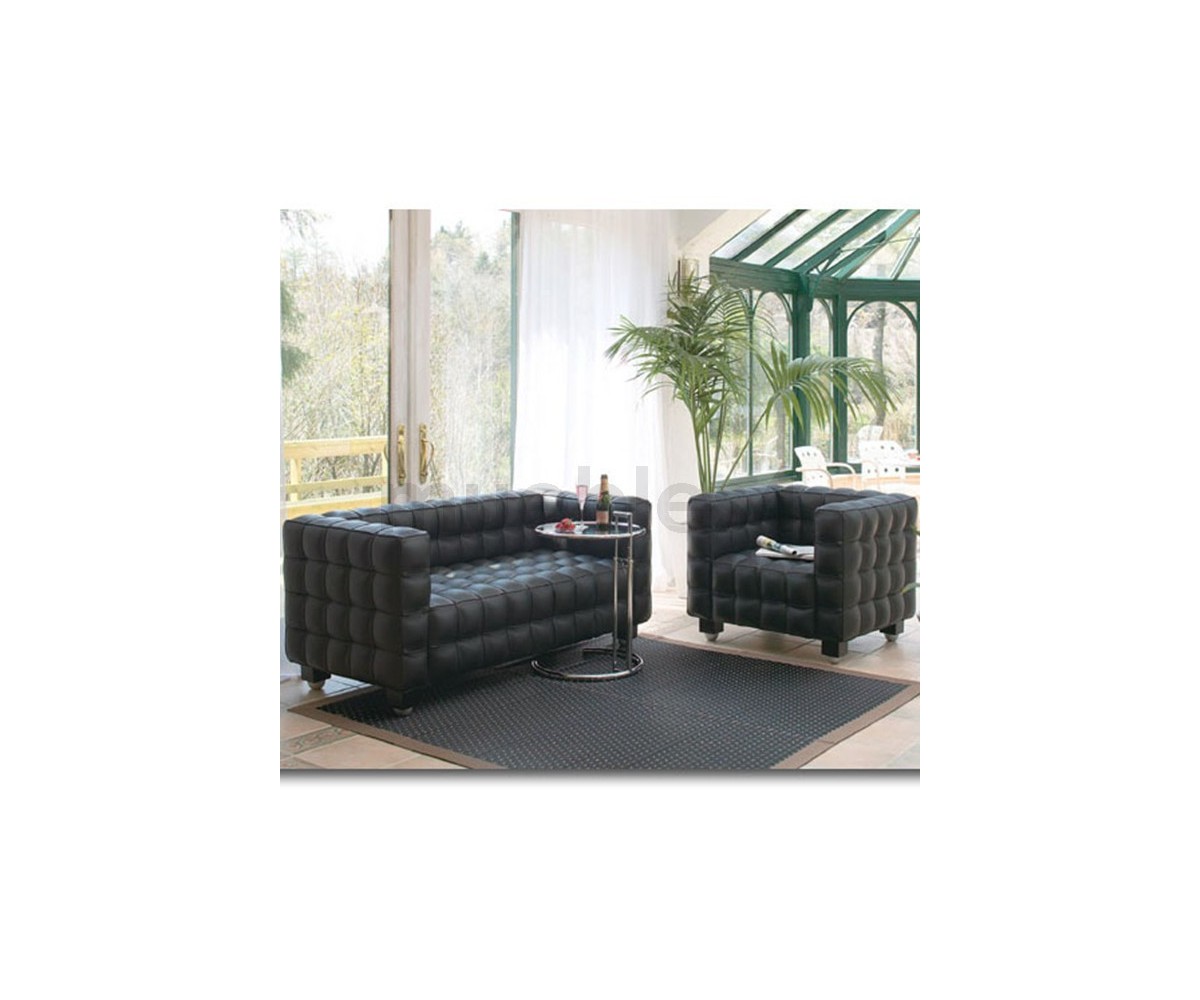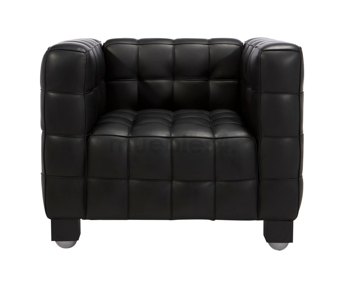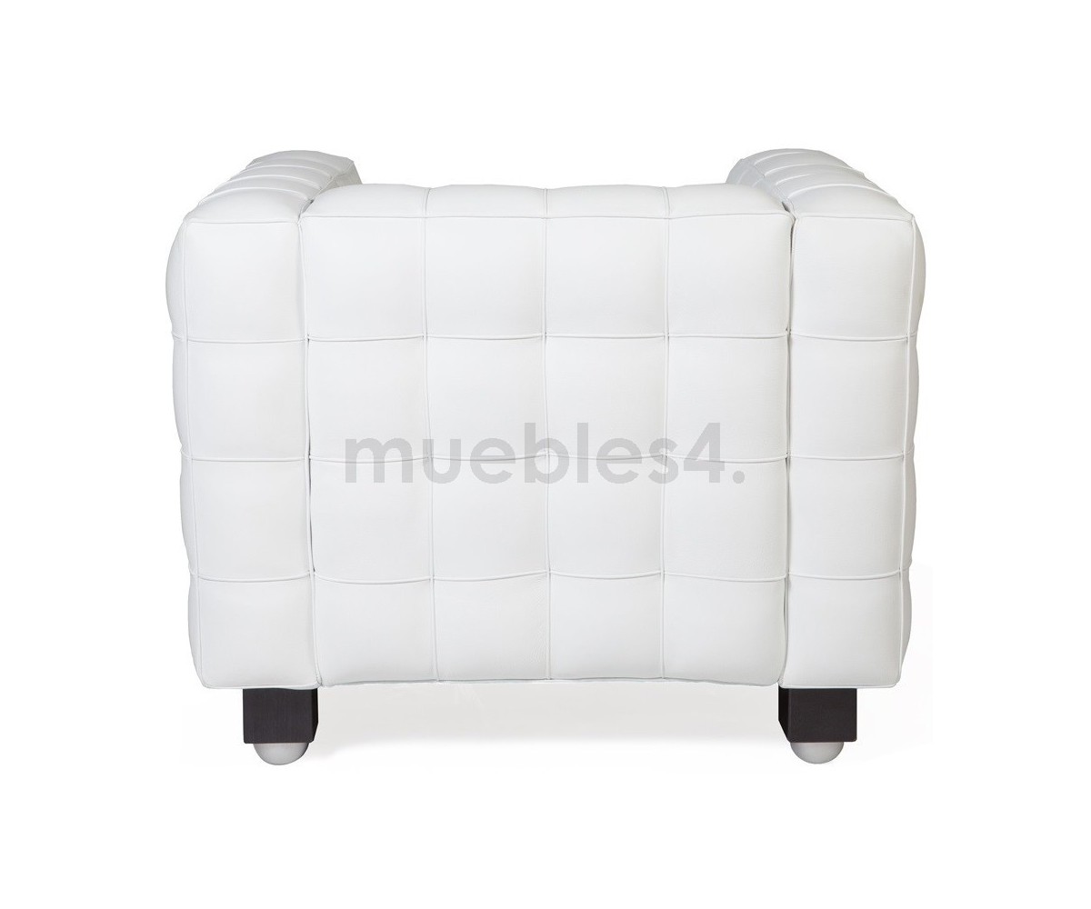 Sillón de 1 plaza inspirado en un diseño de Josef Hoffman. Armazón fabricado en madera de roble con espuma de poliuretano de alta resistencia, durabilidad y indeformable, tapizado en piel italiana color negro o blanco, trasera piel. Disponible en 3 y 2 plazas. Réplica exacta con materiales originales de máxima calidad.