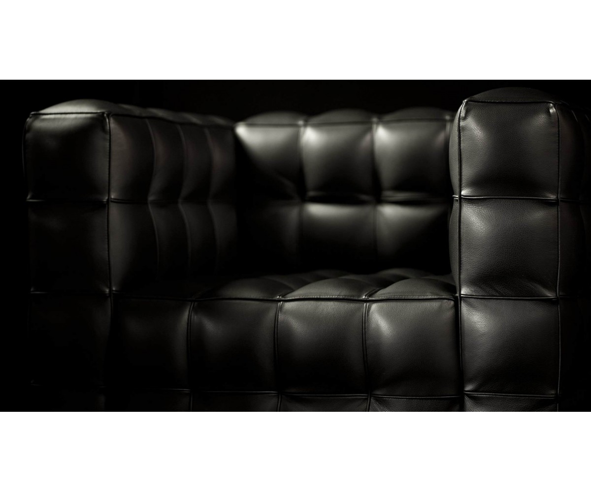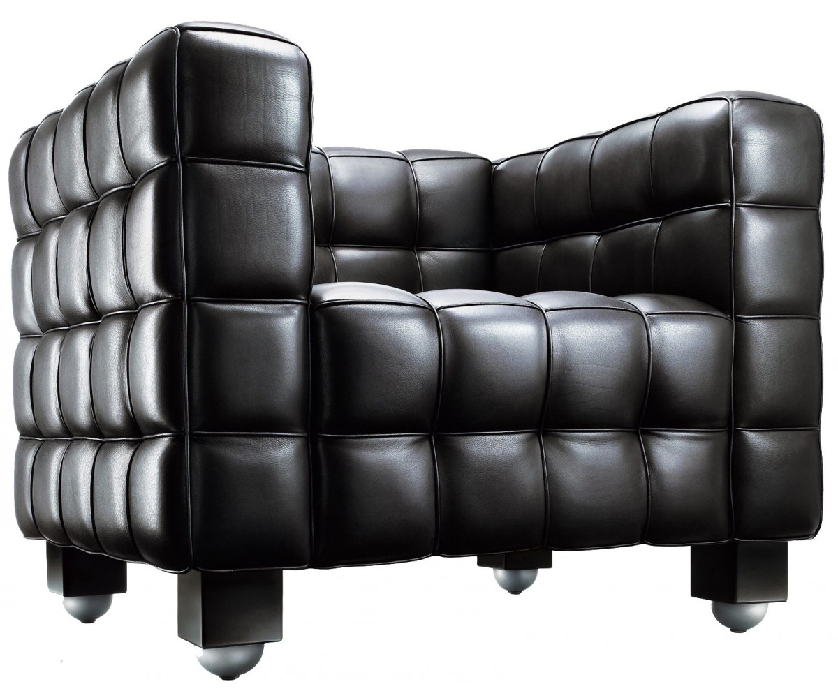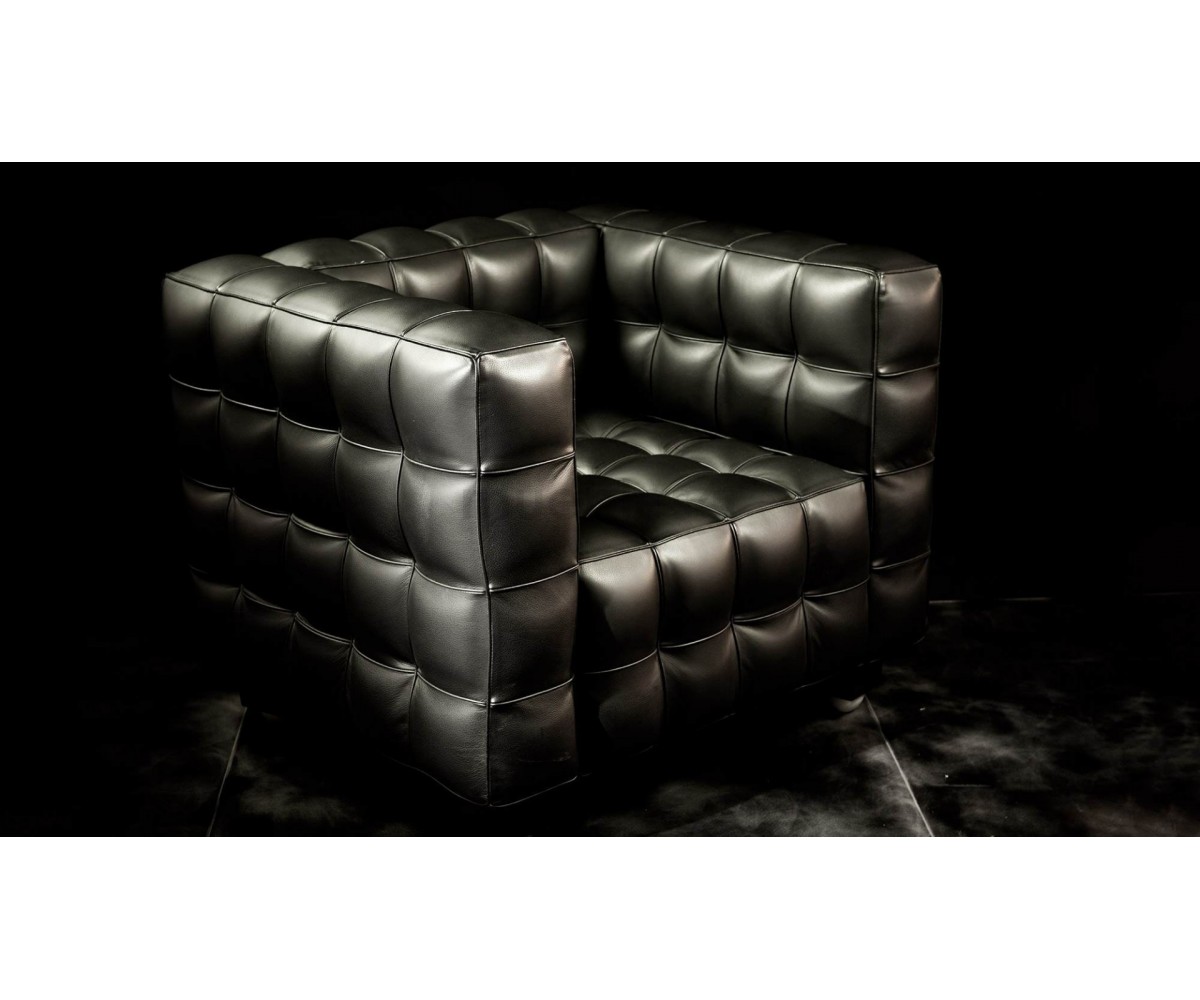 Sillón de 1 plaza inspirado en un diseño de Josef Hoffman. Armazón fabricado en madera de roble con espuma de poliuretano de alta resistencia, durabilidad y indeformable, tapizado en piel italiana color negro o blanco, trasera piel. Disponible en 3 y 2 plazas. Réplica exacta con materiales originales de máxima calidad.