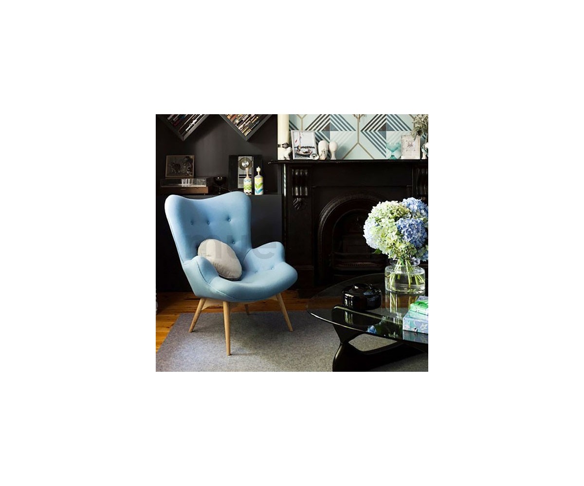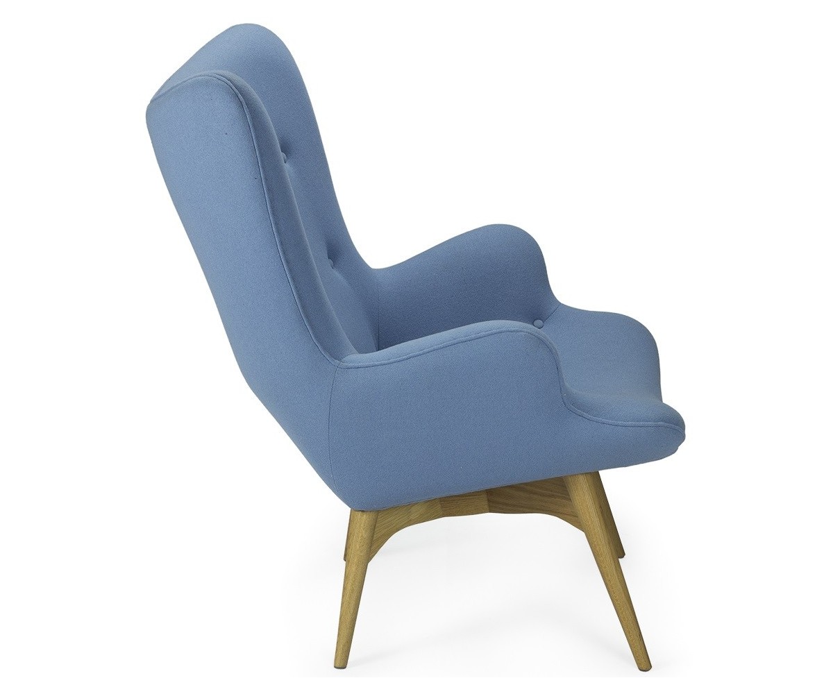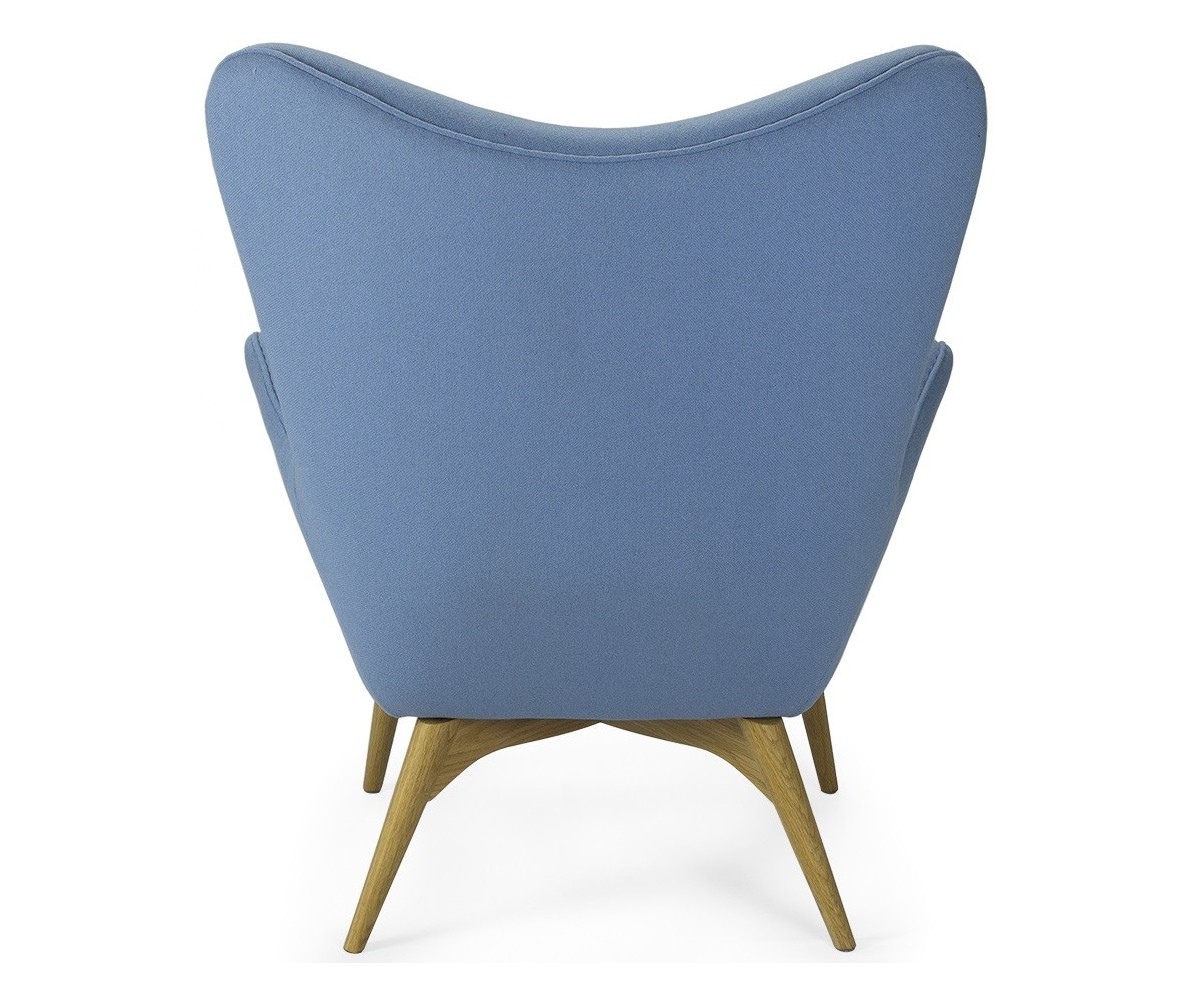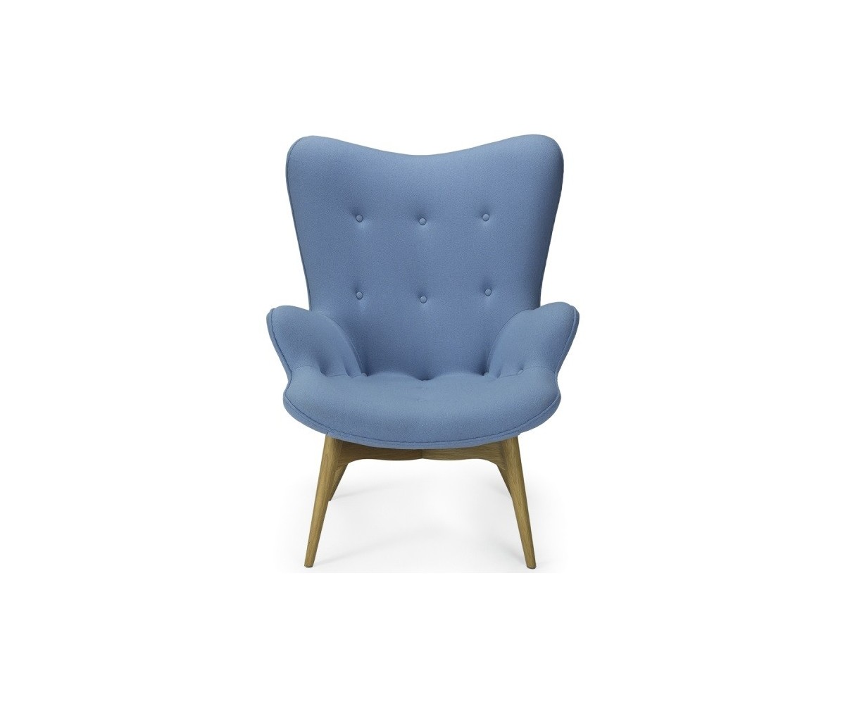 Sillón inspirado en un diseño de Grant Featherston. Hecho para una relajación total, gracias también a su otomana. Está fabricado con una cáscara de fibra de vidrio de calidad premium que esculpe el cuerpo, la tapicería de lana de cashmere y las patas de madera maciza de nogal claro americano. Gran atención a los detalles de las costuras de los botones. Réplica exacta con materiales originales de máxima calidad.