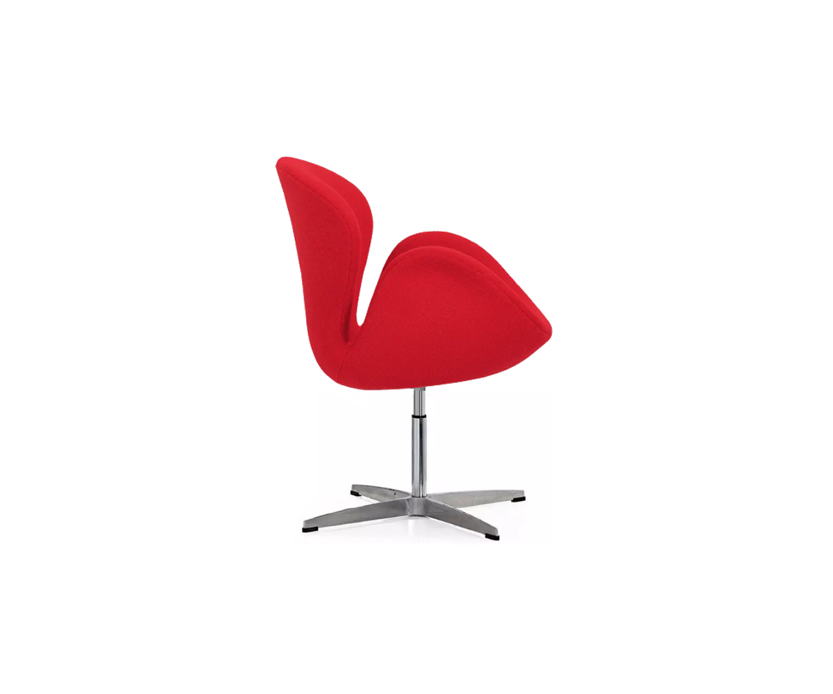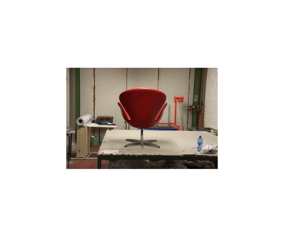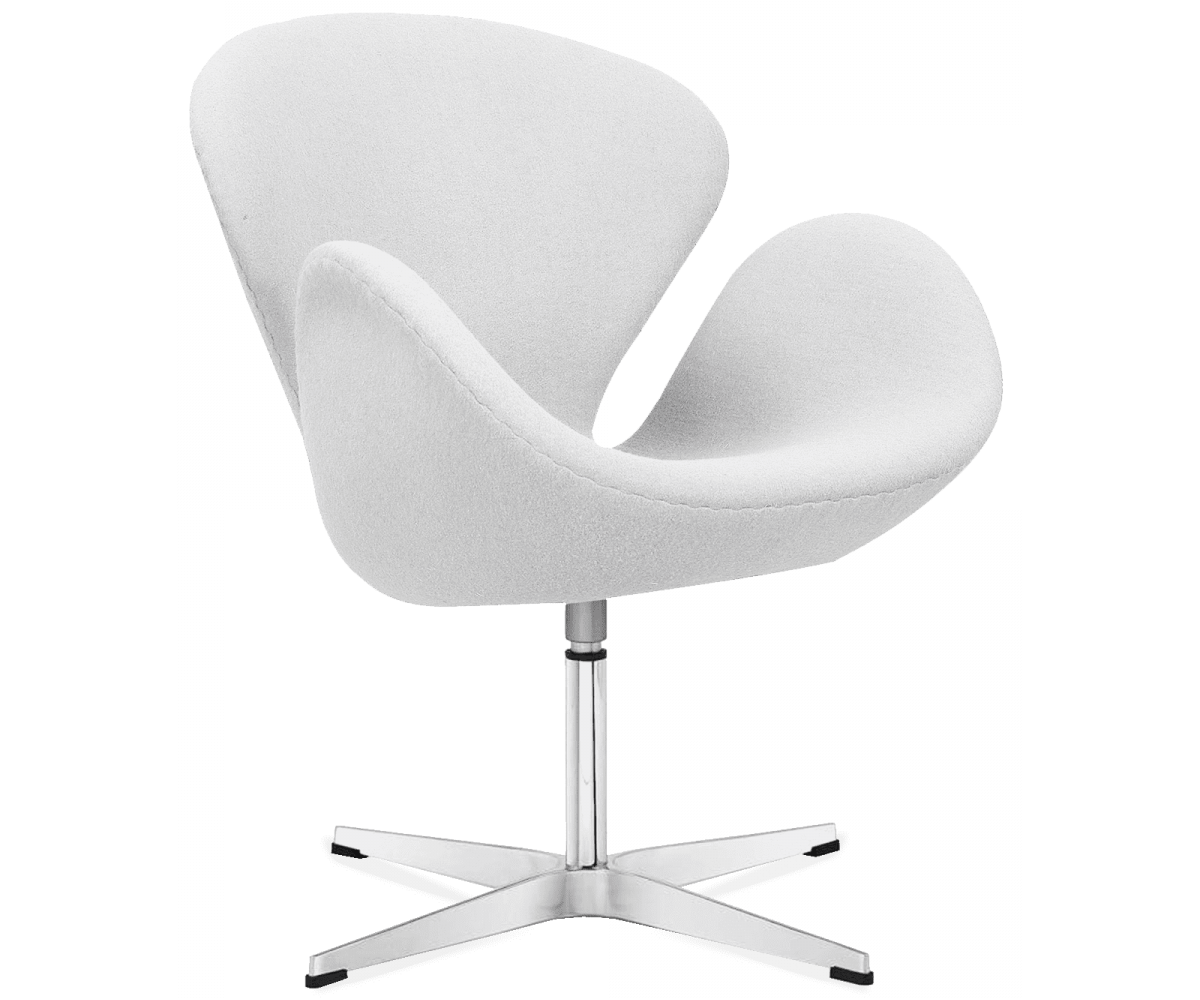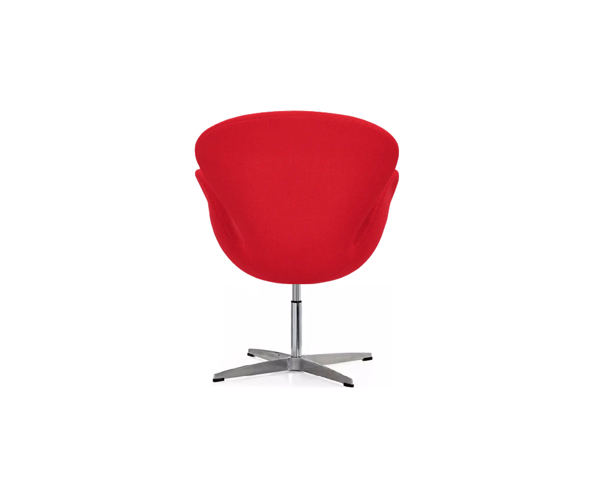 El sillón Cisne fué diseñado por Arne Jacobsen en 1958 para el vestíbulo y las áreas de descanso del SAS Royal Hotel en Copenhague. Es uno de los sillones más populares dentro de la colección de sillas de Fritz Hansen. Base de aluminio y acero satinado con cuerpo central tubular y cuatro aspas. Carcasa de acero con espuma inyectada de poliuretano y fibra de vidrio, tapizado en 100% LANA CASHMERE terminación color blanco, rojo, gris o negro, para otros colores consultar disponibilidad. También está disponible el sillón de respaldo algo (EGG) y la mesa centro con la misma base. Réplica exacta con materiales originales de máxima calidad.