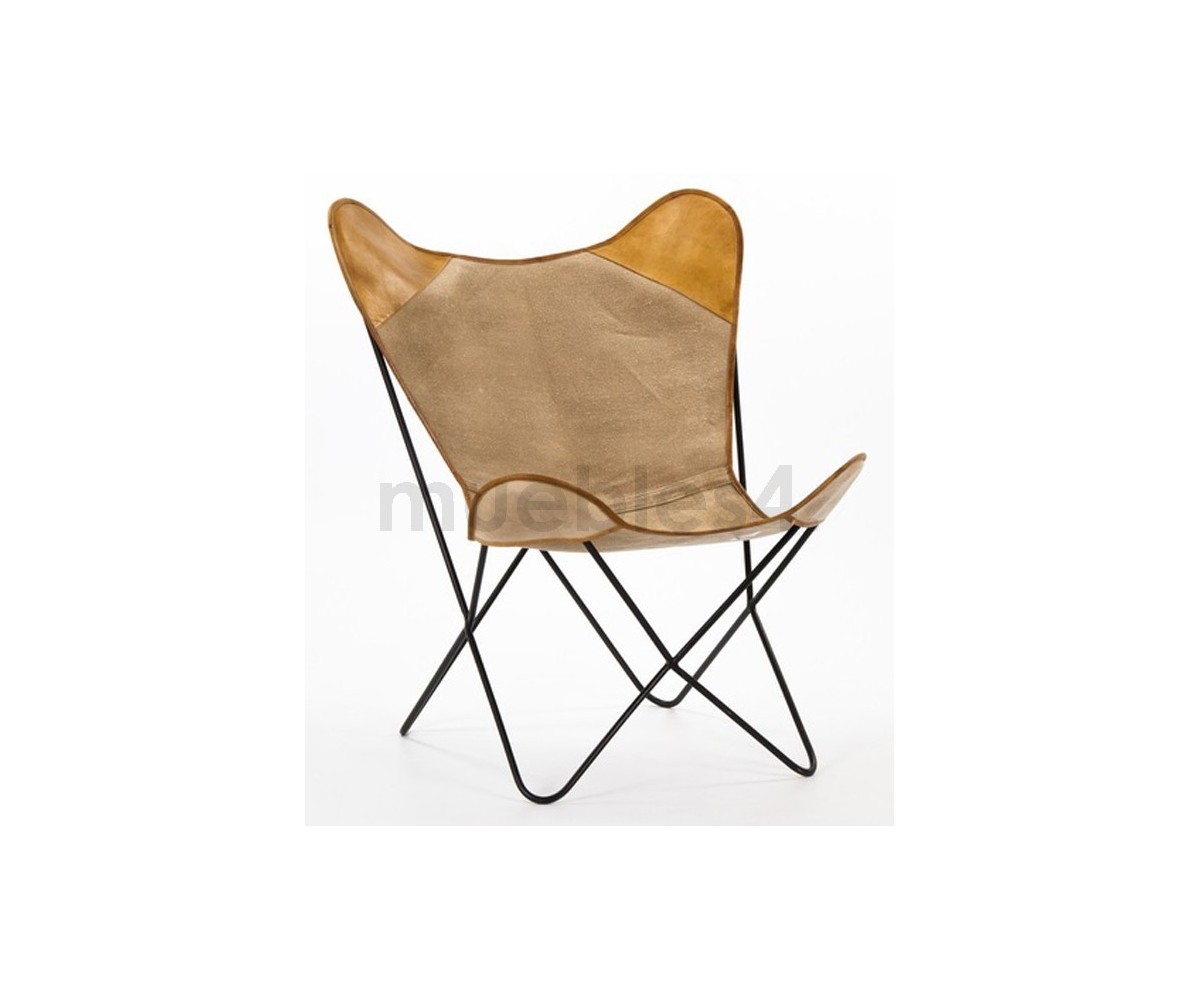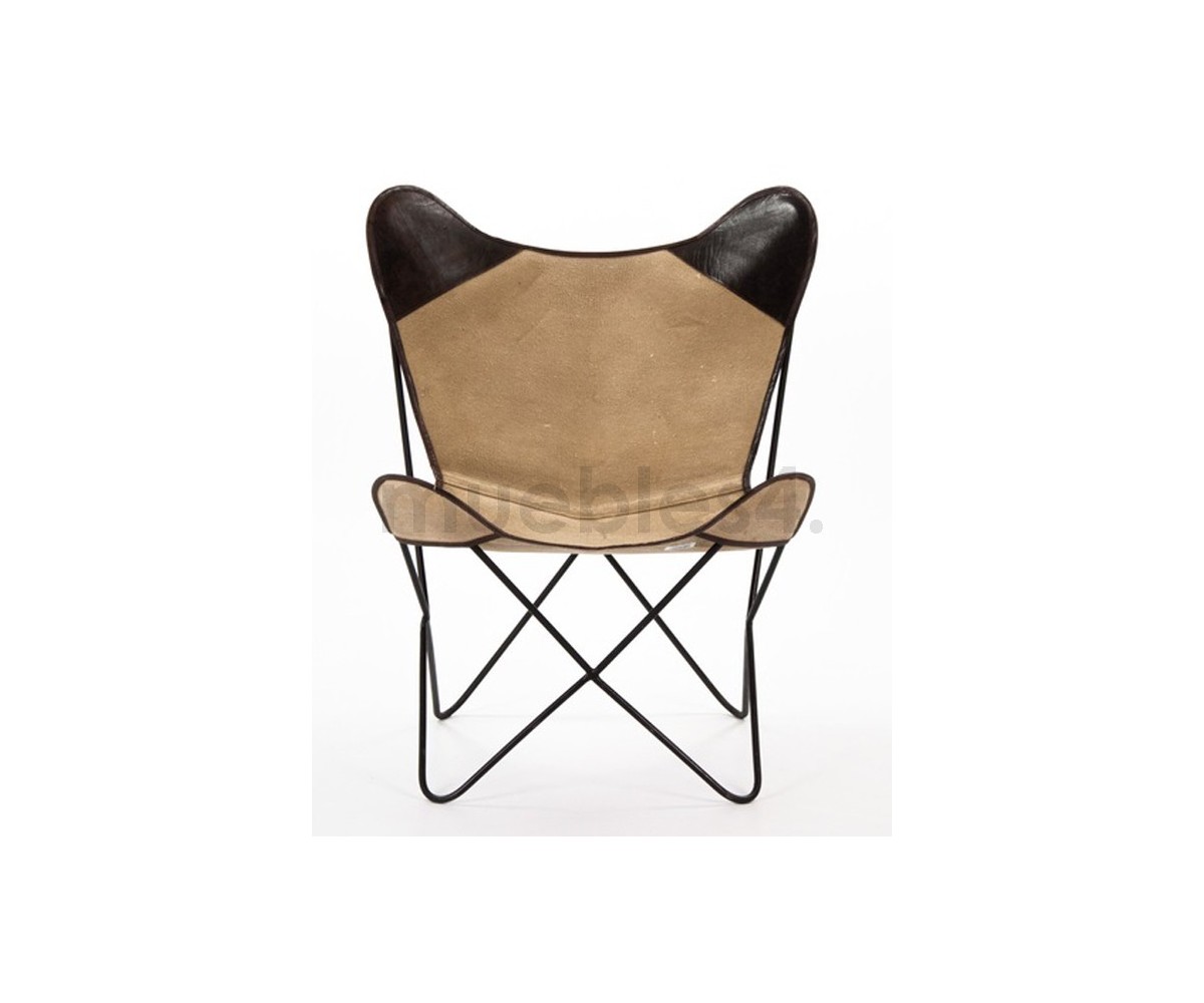 Sillón inspirado en un diseño de Antonio Bonet, Juan Kurchan & Jorge Ferrari Hardo. Fabricada con estructura de acero tubular color negro, tapizada a mano en CUERO color marrón, natural y kaki, ante y tejido. Réplica exacta con materiales originales de máxima calidad.