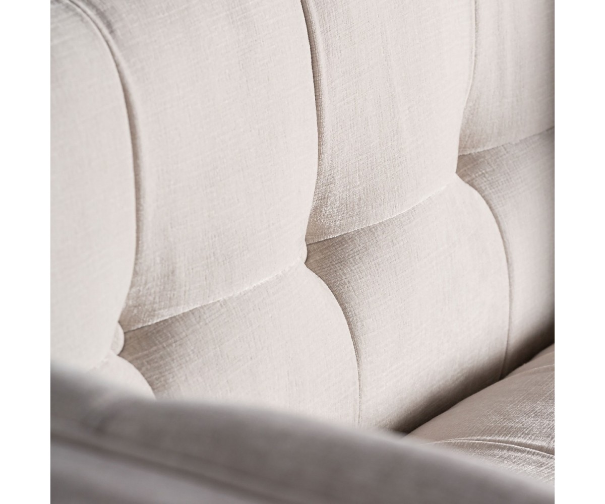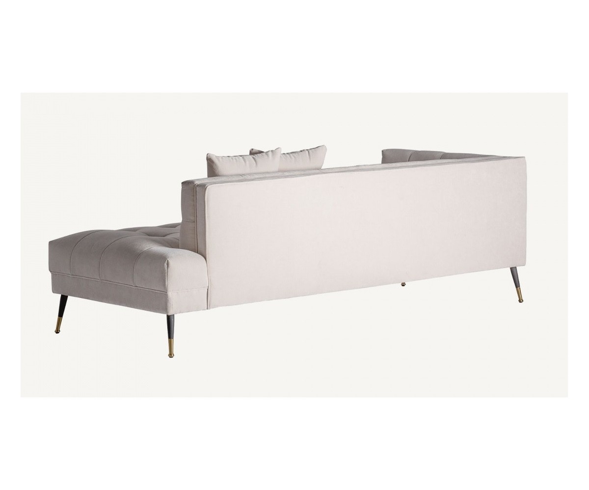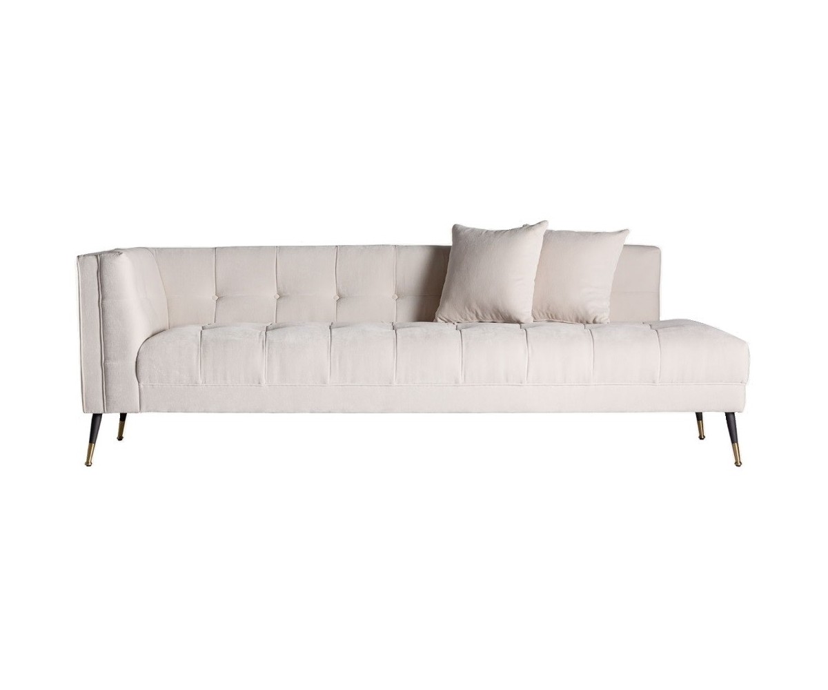 Sofá Lounge inspirado en un diseño de Eichholtz. Estructura de roble macizo de una pieza, relleno de polipropileno indeformable. Tapizado en tejido color blanco 100% poliéster, desenfundable. Patas cónica en acero lacado en negro y dorado.