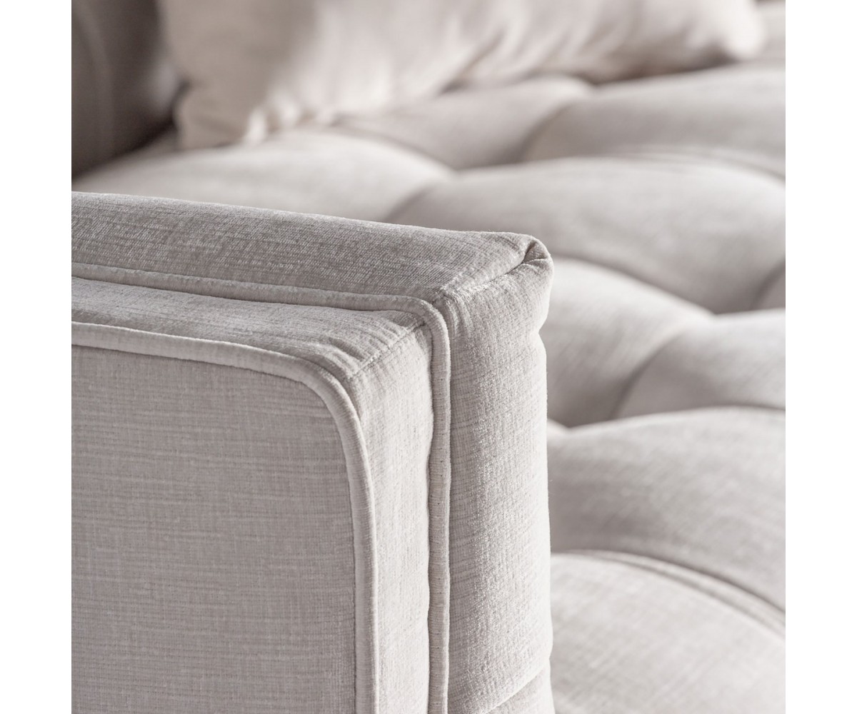 Peso: 48,3 kg. Medida de las patas: 2.5X2.5X19 cm. Medida del asiento: 205X66X15 cm. Medida del suelo al asiento: 42 cm. Medida del suelo al reposabrazos: 73 cm. Medida del respaldo: 180X16X32 cm. Peso soportado: 260 kg. Cojines a juego: ·Cantidad: 2 ·Medidas: 40X16X40 cm. ·Acabado: liso 2 caras ·Modo de cierre: cremallera Número de plazas: 3 Partes desmontables: patas-Patas con tacos regulables Incluye: cojines. Réplica exacta con materiales originales de máxima calidad.