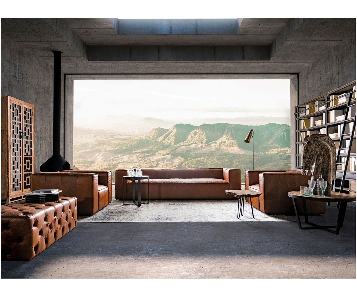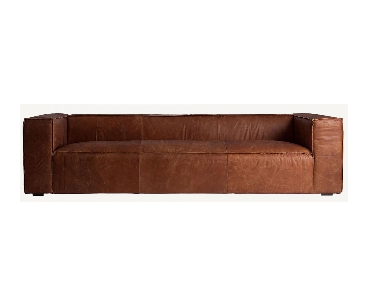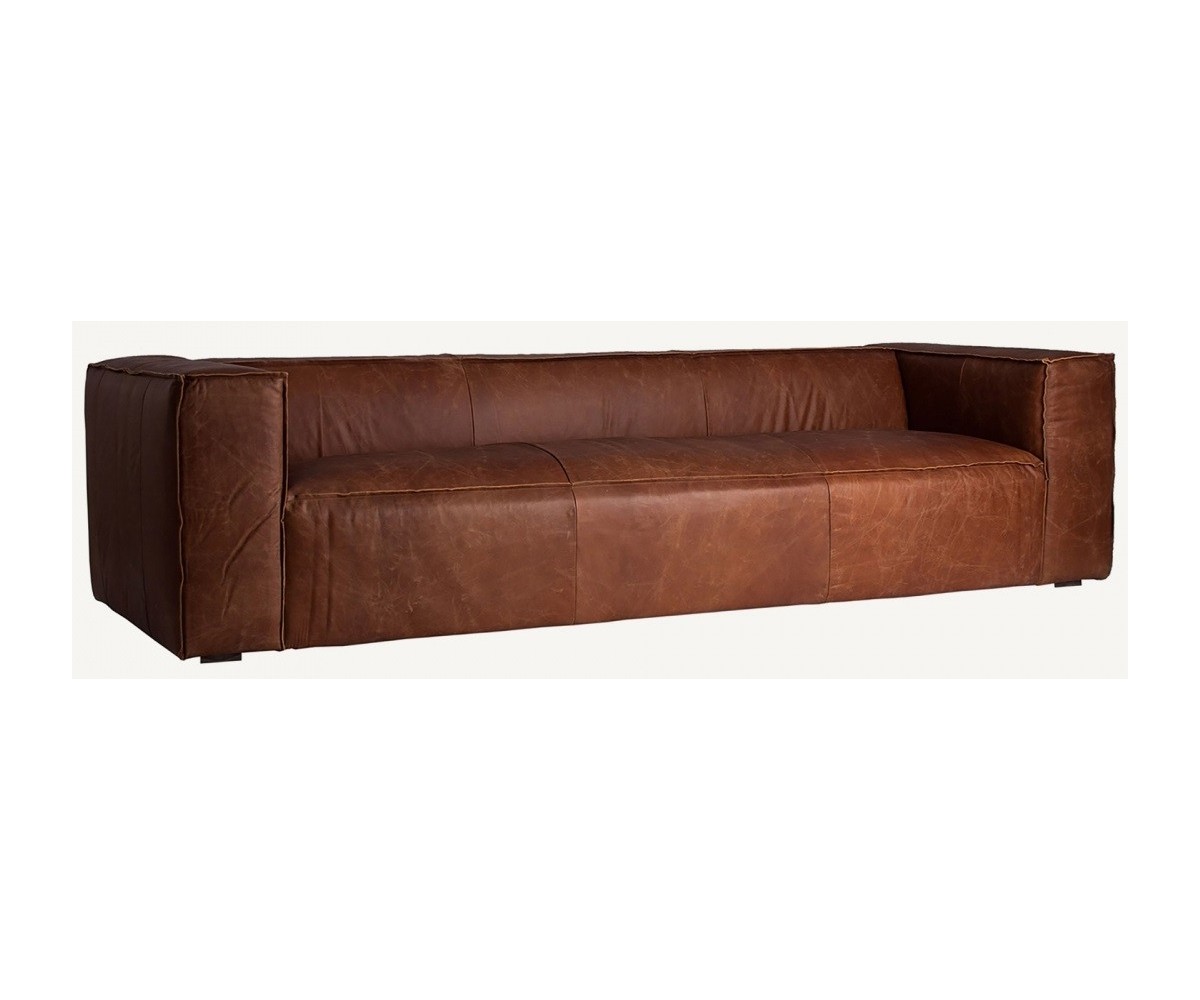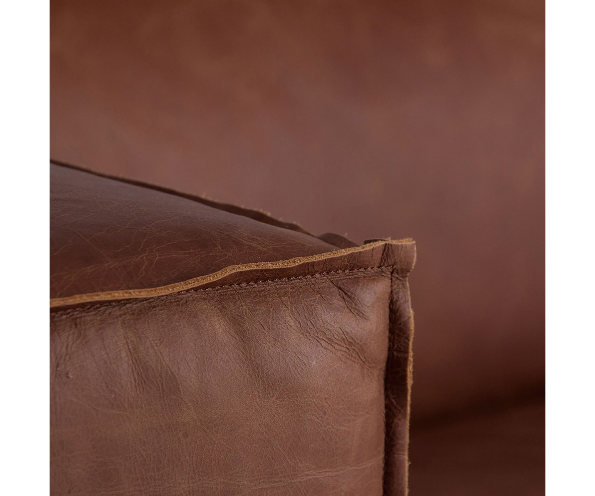 Sofá inspirado en un diseño de Hay. Estructura de abeto macizo de una pieza, relleno de polipropileno indeformable. Tapizado en cuero de vaca color marrón. Producto desmontable.