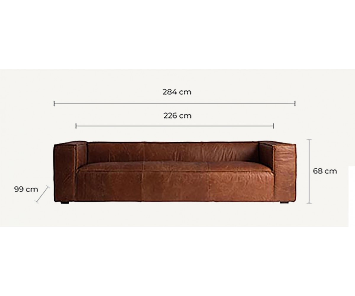 Peso: 72,0 kg. Medida de las patas: 10X10X3 cm. Medida del asiento: 223x61 cm. Medida del suelo al asiento: 46 cm. Densidad del asiento: 35 Medida del suelo al reposabrazos: 68 cm. Medida del respaldo: 223x30x33 cm. Peso soportado: 360 kg. Número de plazas: 4 Partes desmontables: patas. Réplica exacta con materiales originales de máxima calidad.