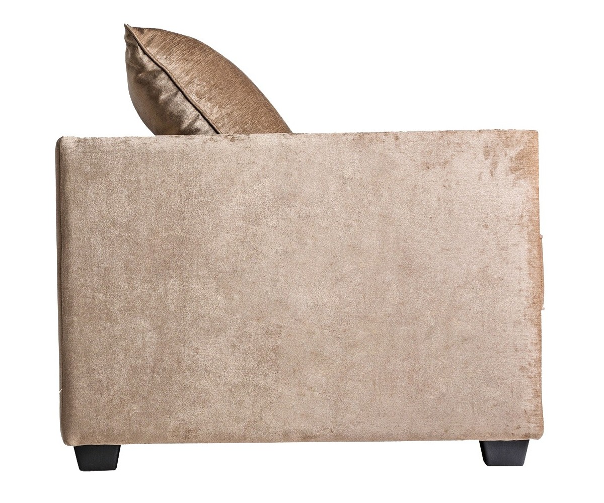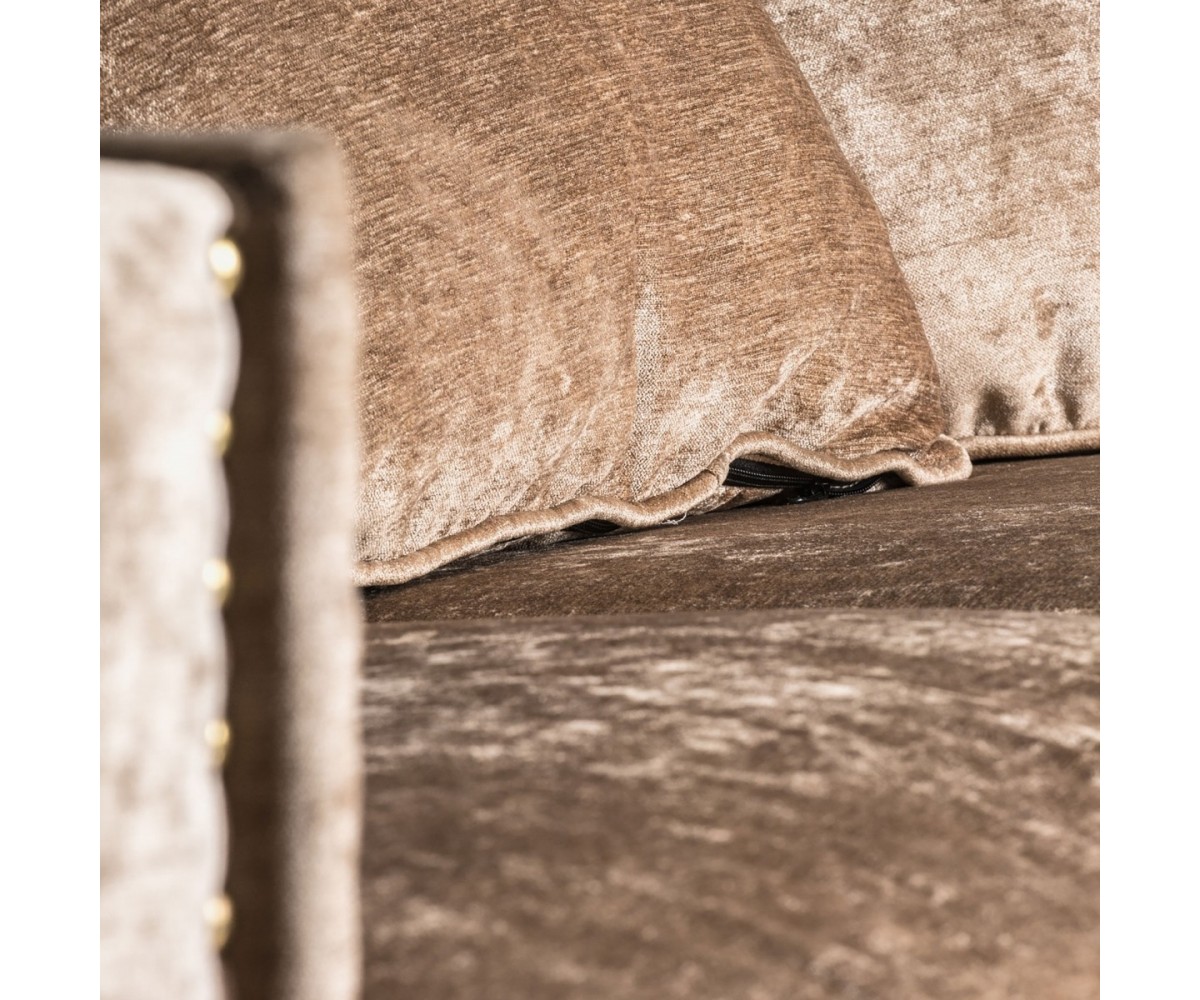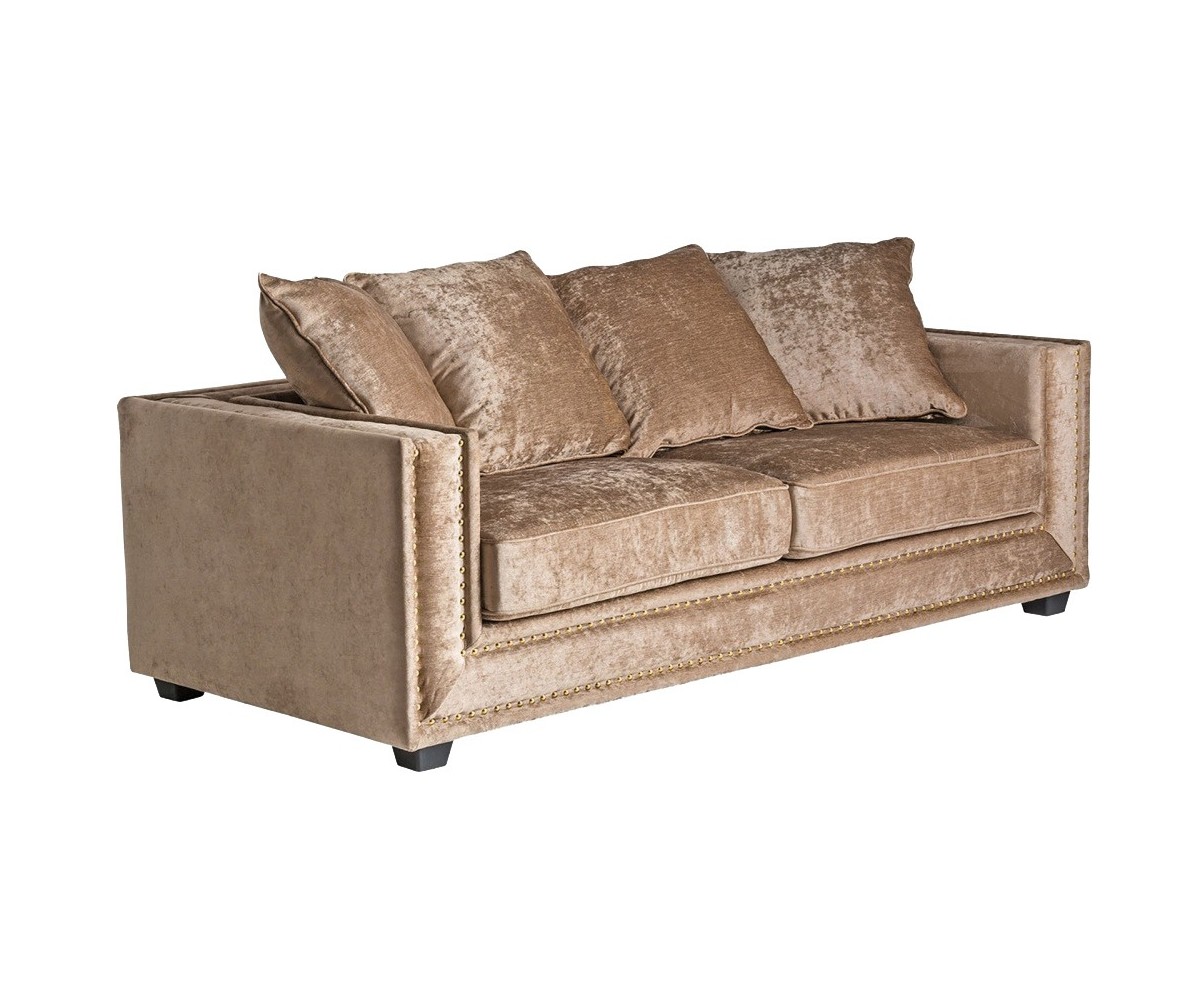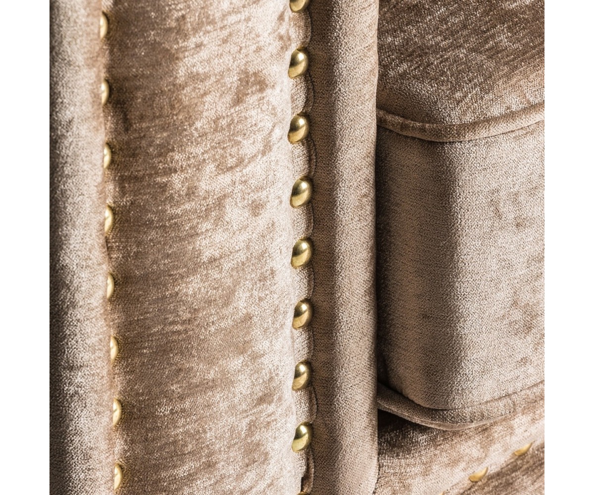 Sofá inspirado en un diseño de Edward Van Vliet. Estructura de roble macizo de una pieza, relleno de polipropileno indeformable. Tapizado en tejido color dorado 100% poliéster. Producto desmontable. Patas en madera oscura.