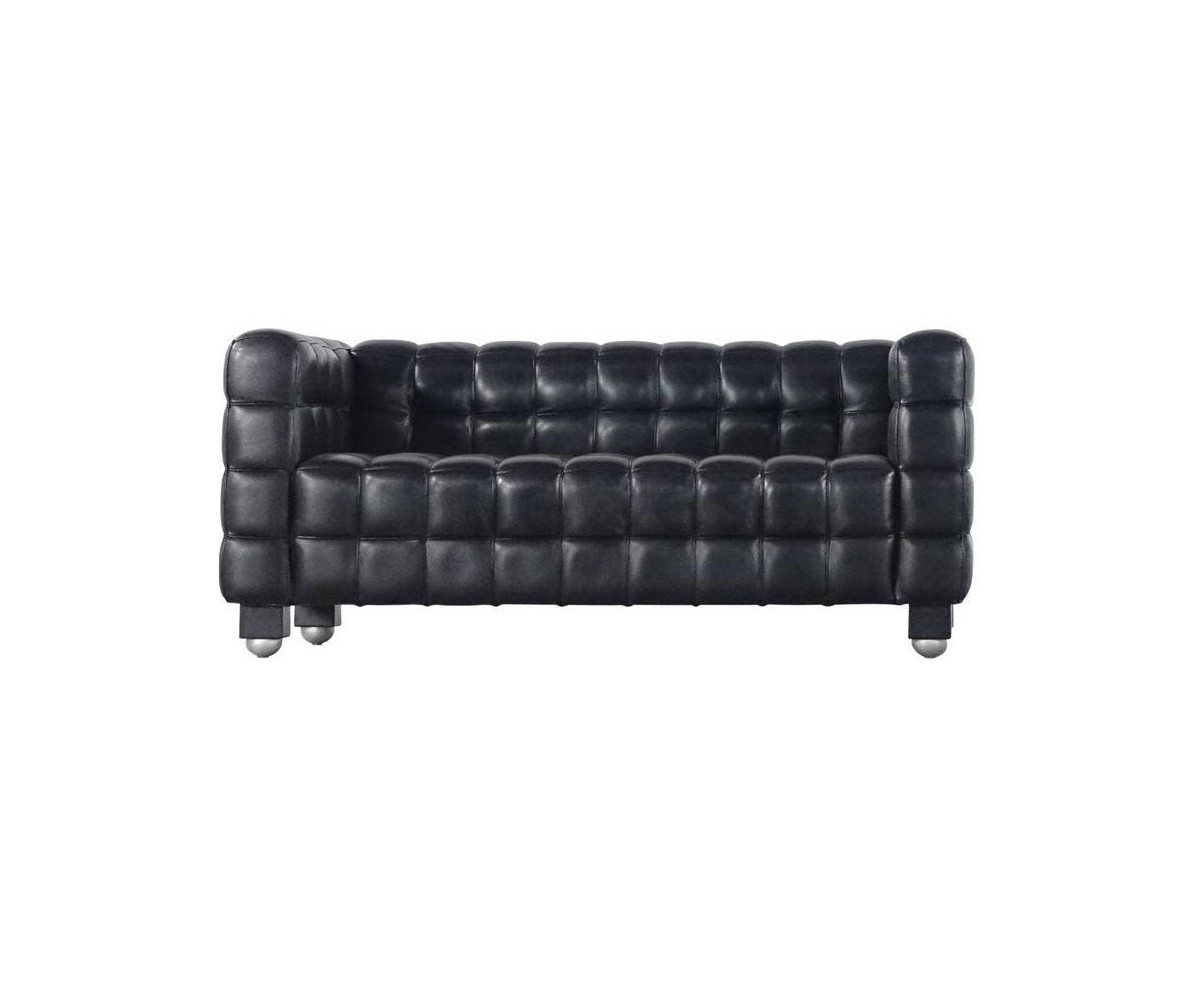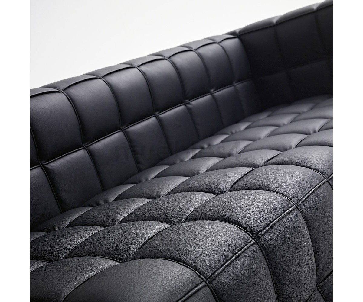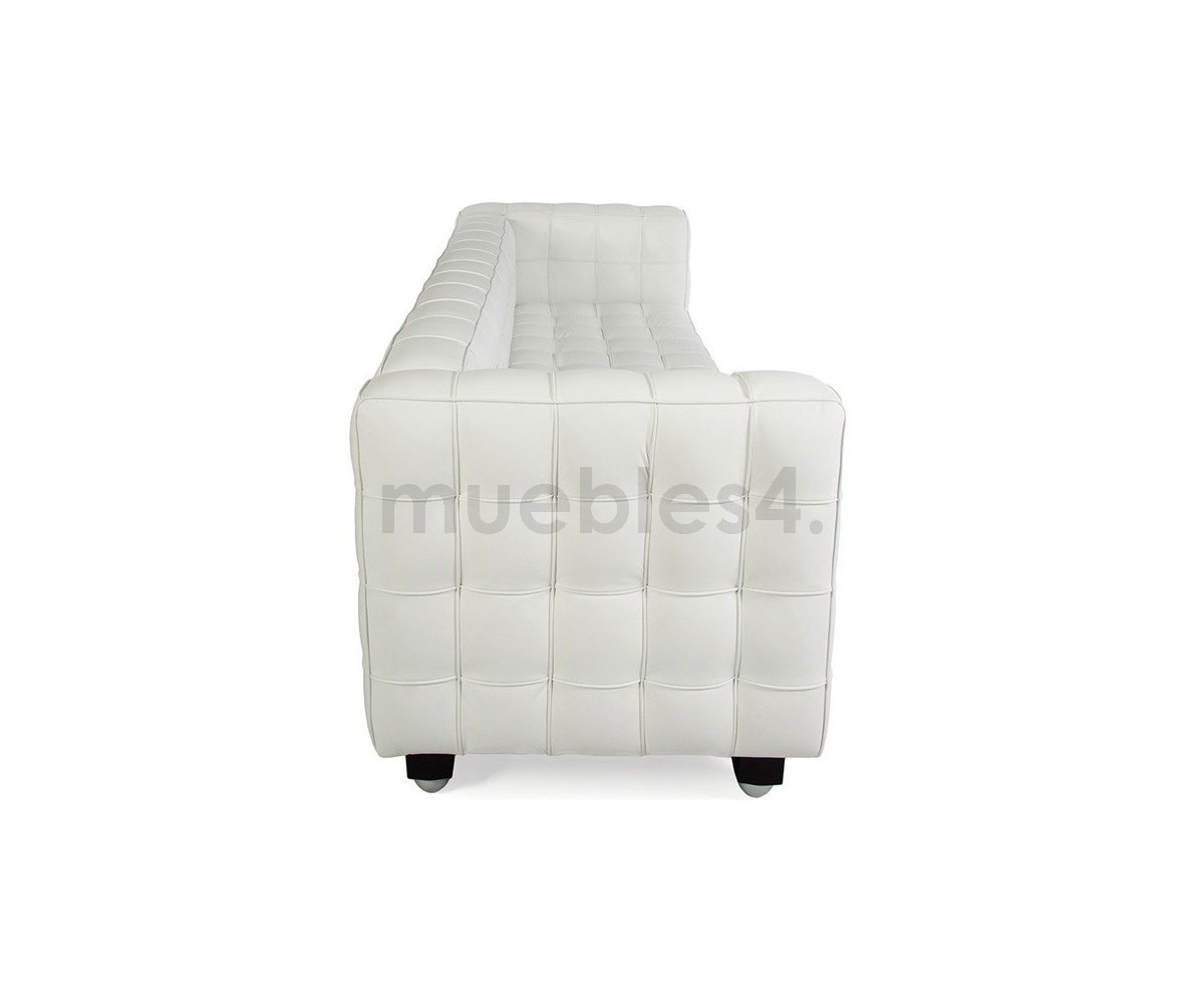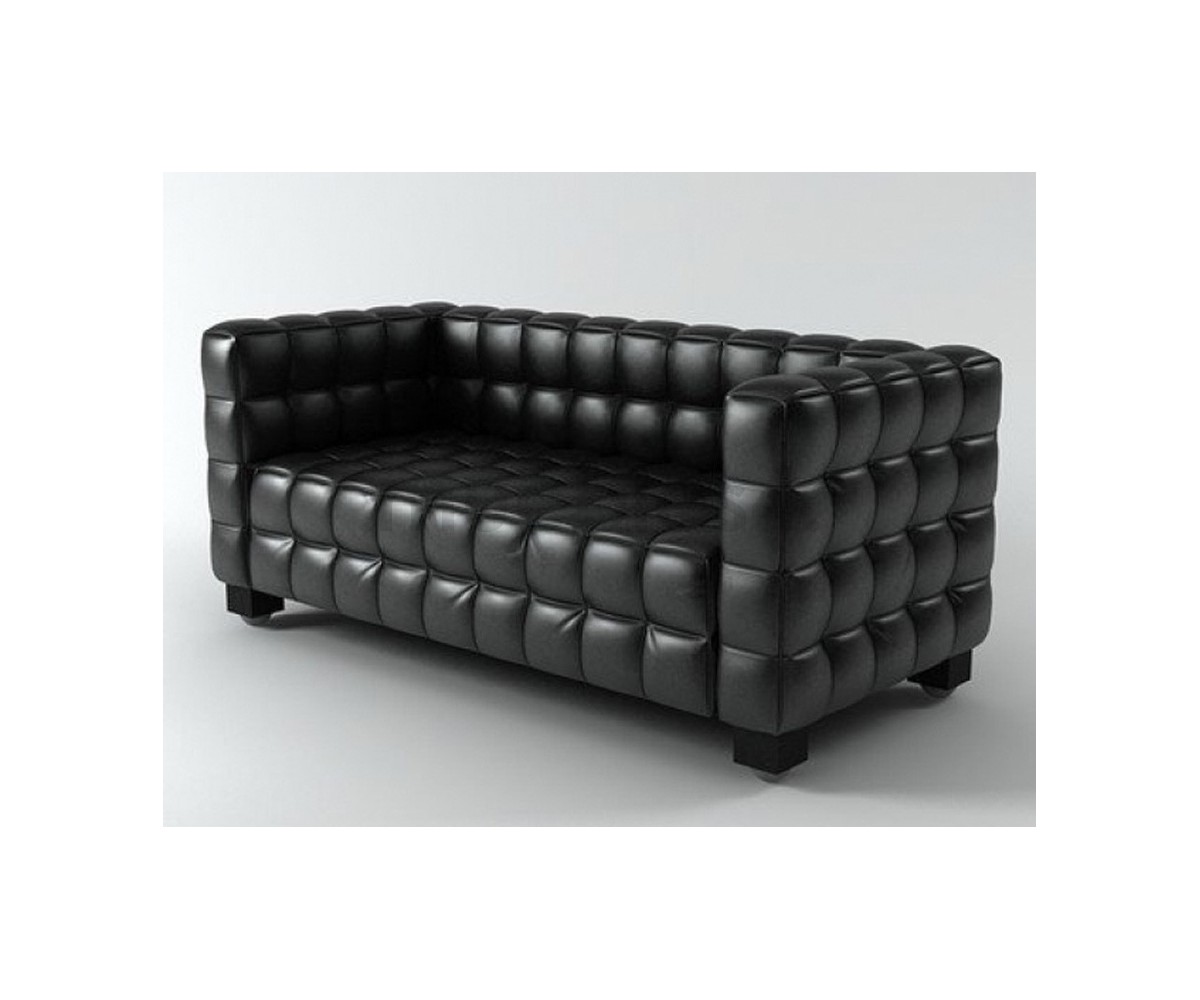 Sofá de 2 plazas inspirado en un diseño de Josef Hoffman elaborado en Italia. Armazón fabricado en madera de roble con espuma de poliuretano de alta resistencia, durabilidad y indeformable, tapizado en piel italiana color negro o blanco. Disponible en 3 plazas y butaca. Réplica exacta con materiales originales de máxima calidad.