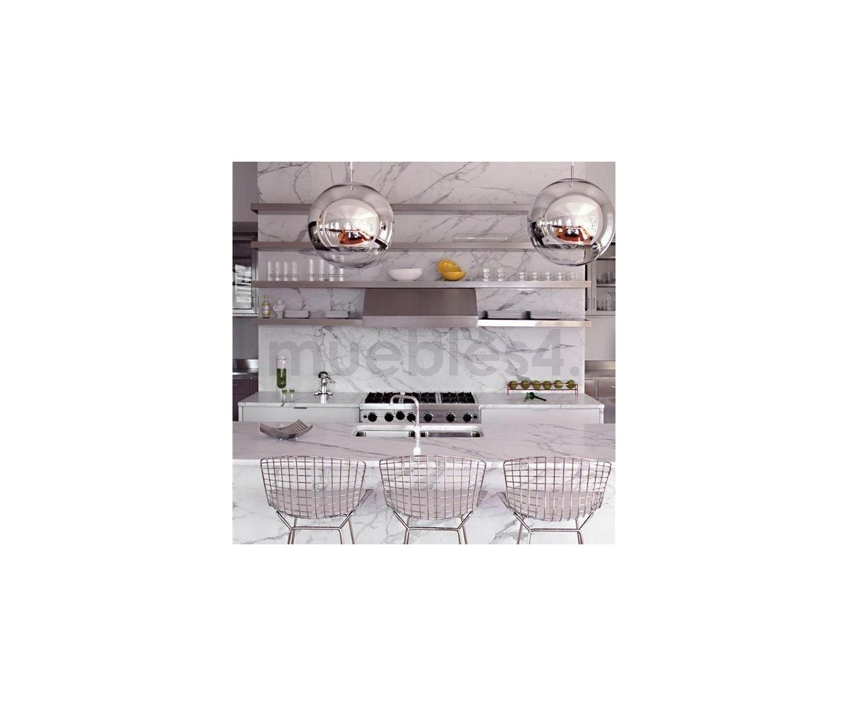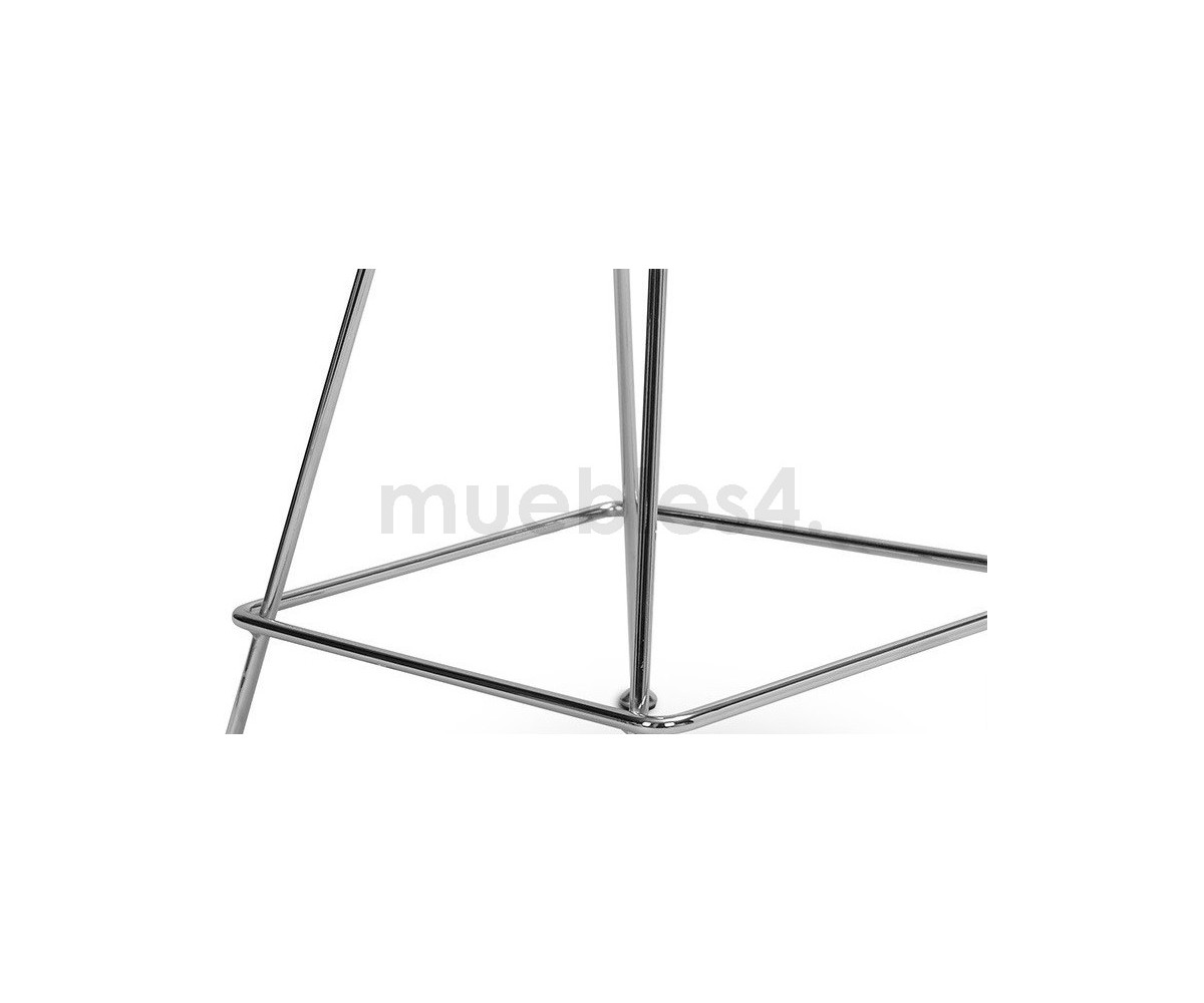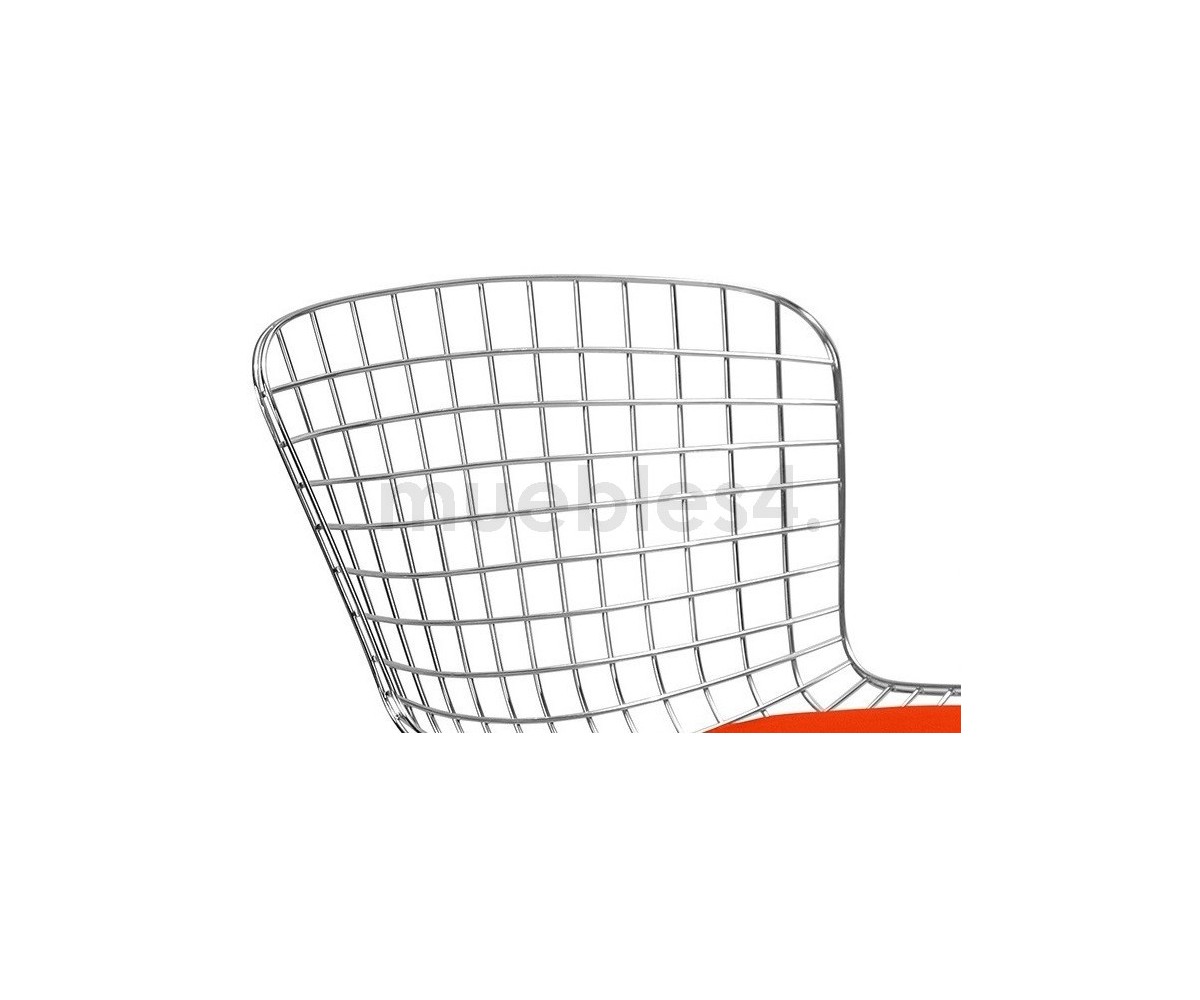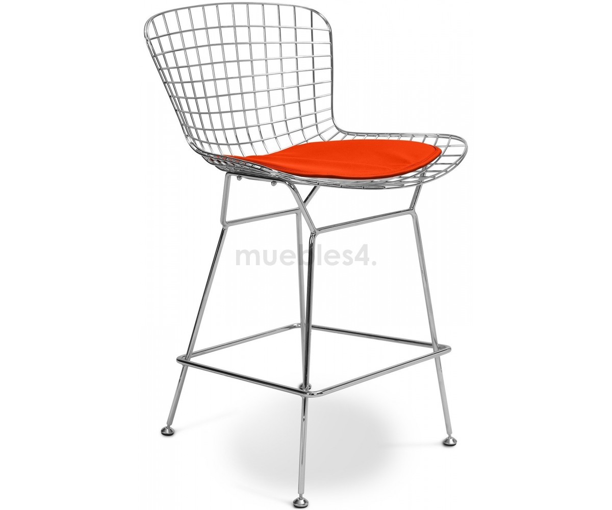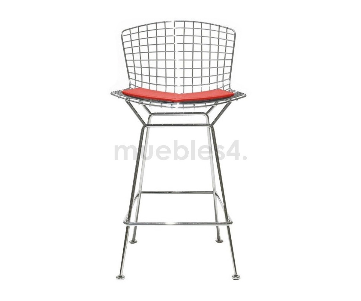 Taburete alto inspirado en un diseño de Harry Bertoia. Estructura en acero cromado terminación brillo, realizado mediante barillas tubulares, asiento con cojin tapizado en piel ecológica, color rojo. Réplica exacta con materiales originales de máxima calidad.