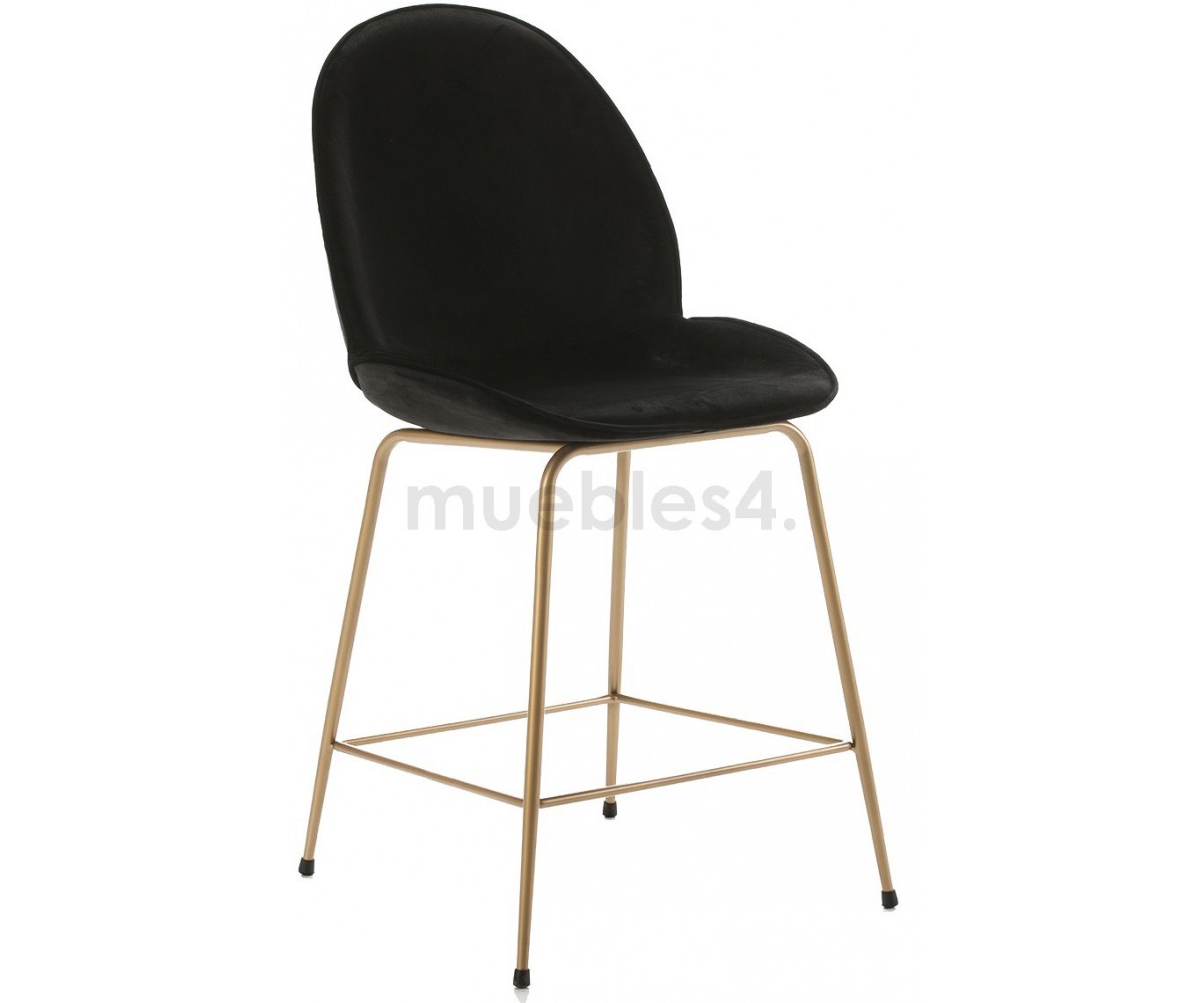 Taburete mediano inspirada en un diseño de GamFratesi. Carcasa fabricada en fibra de vidrio, tapizada en tejido terciopelo negro. Estructura de forma tubular fabricada en acero con TRIPLE lacado color dorado. También disponible en silla. Fabricado en Italia. Réplica exacta con materiales originales de máxima calidad.