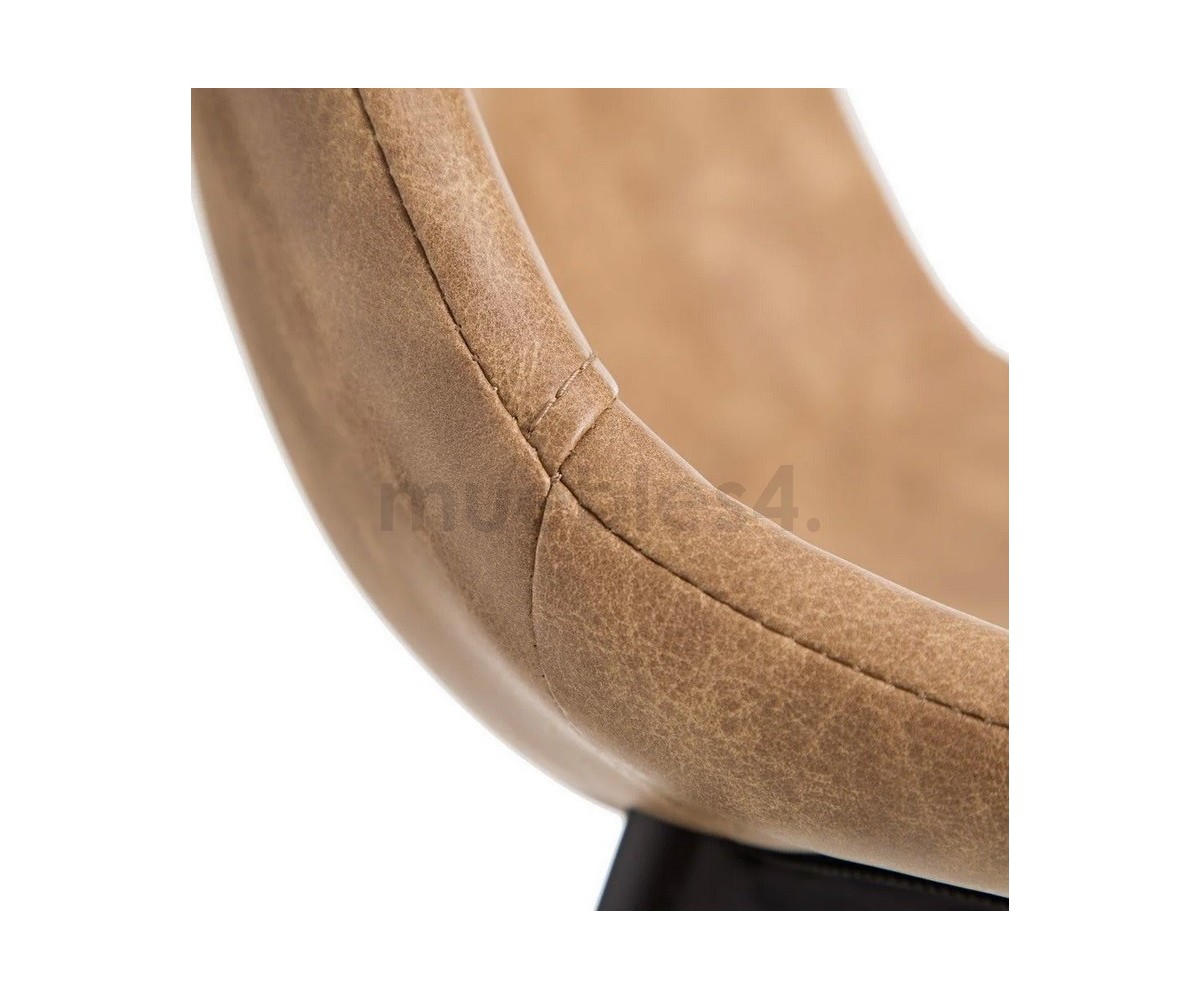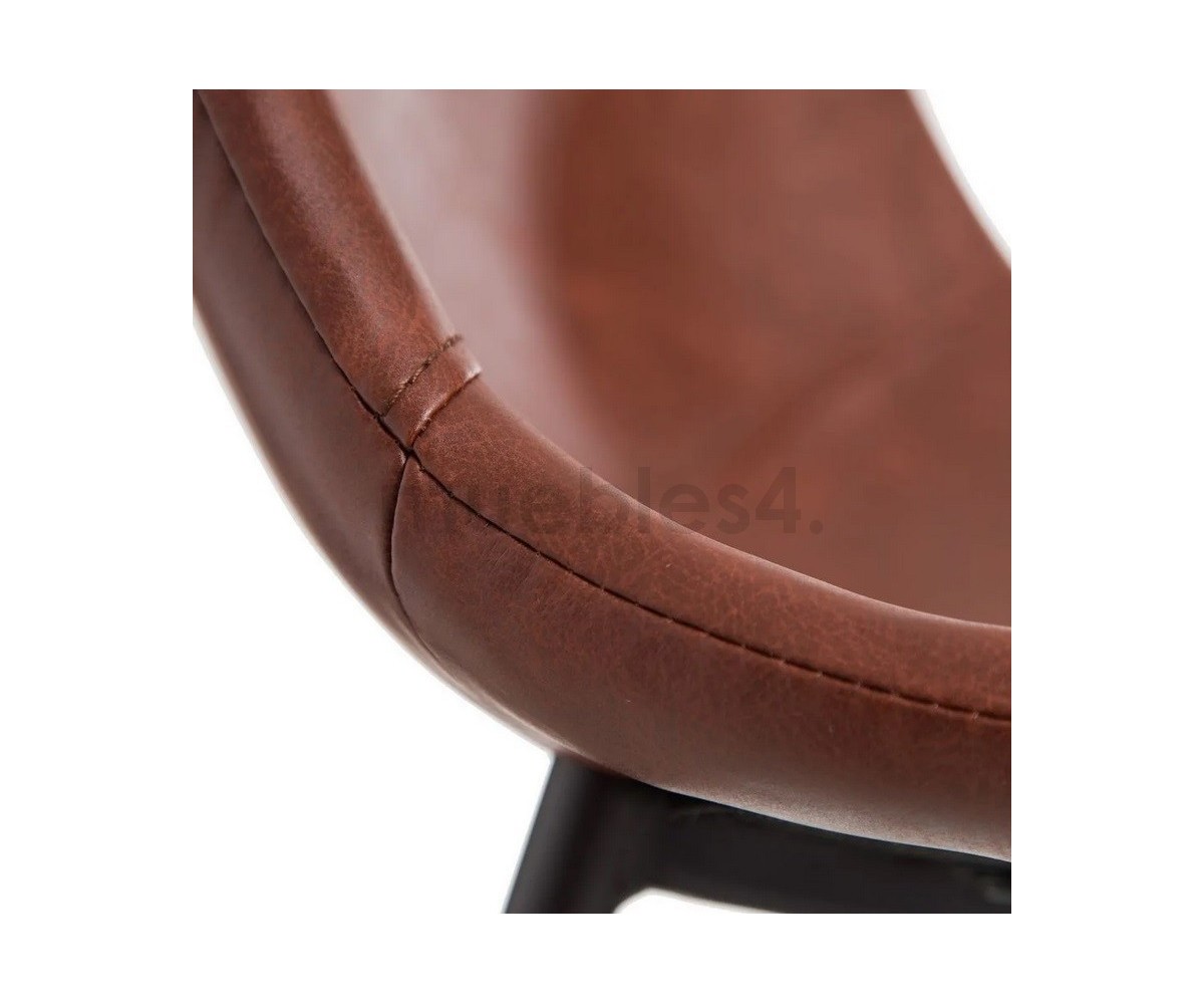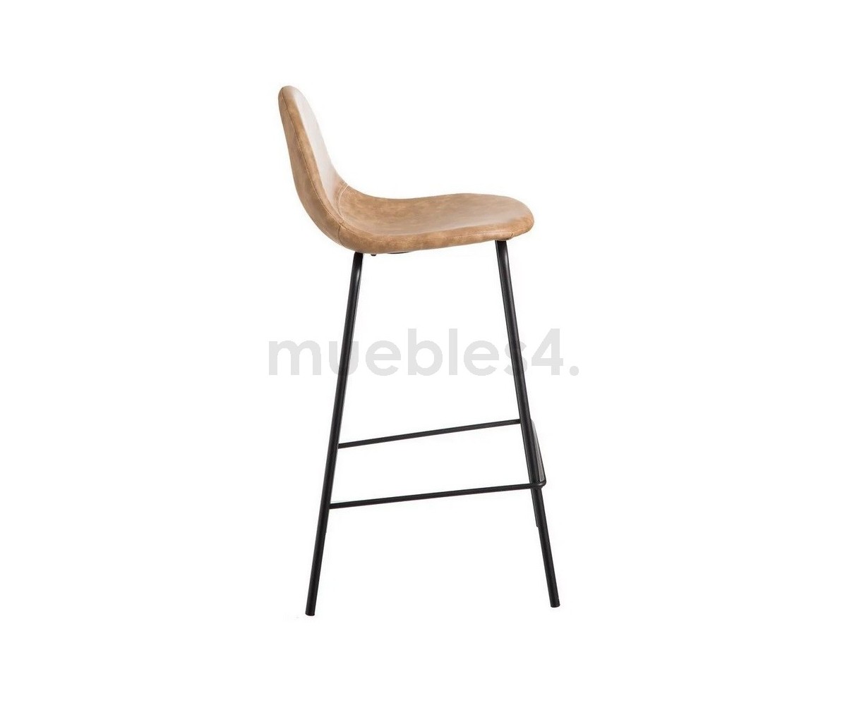 Taburete alto inspirado en un diseño de Iskos-Berlin. Estructura fabricada en acero tubular con reposapiés lacado color negro, asiento en madera curvada tapizada en piel ecológica en color beig, marrón o granate, relleno de esponja de 10mm de espesor. Modelo no apilable. También disponible en silla. Réplica exacta con materiales originales de máxima calidad.