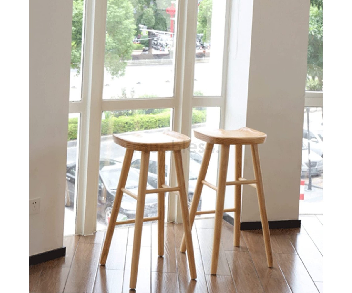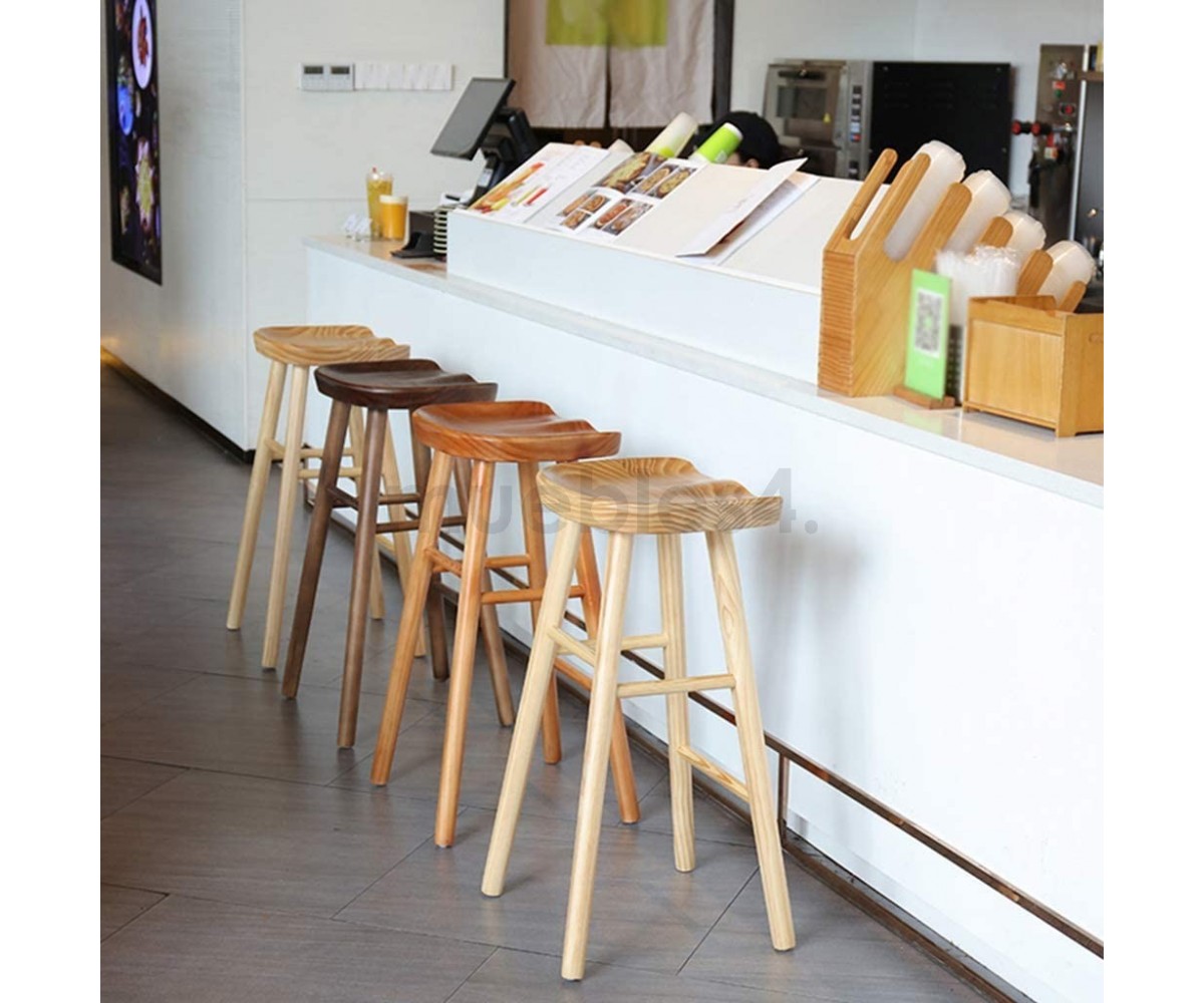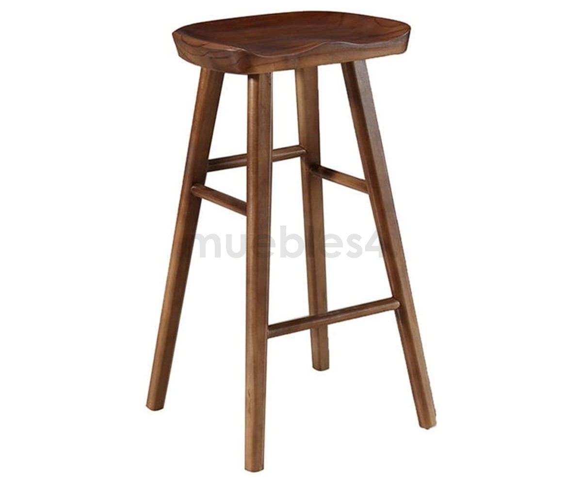 Taburete alto inspirado en Craig Bassam. Diseño retro inspirado en la ergonomía de los icónos asientos de tractores suizos. Hace lucir la nobleza de la madera con patas elegantes y en ángulo para una base resistente.