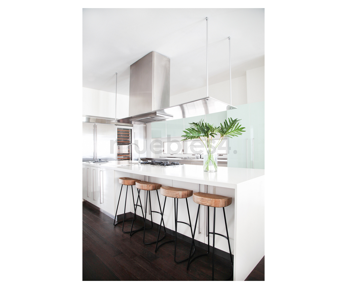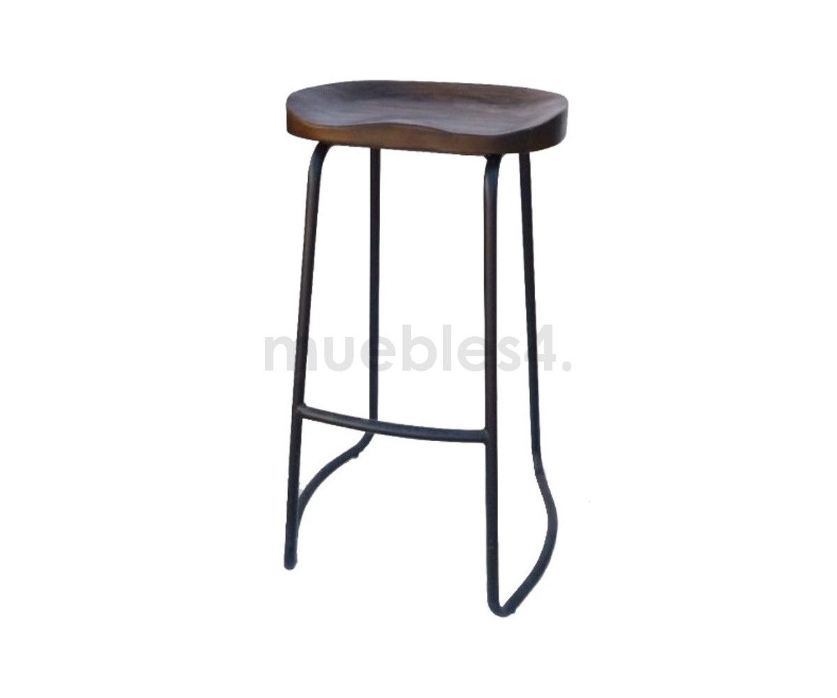Taburete alto inspirado en Craig Bassam. Fabricado en dos acabados, asiento en madera de nogal oscuro y estructura tubular en acero lacado en color nego y asiento en roble claro con estructura en acero tubular envejecido. Réplica exacta con materiales originales de máxima calidad.