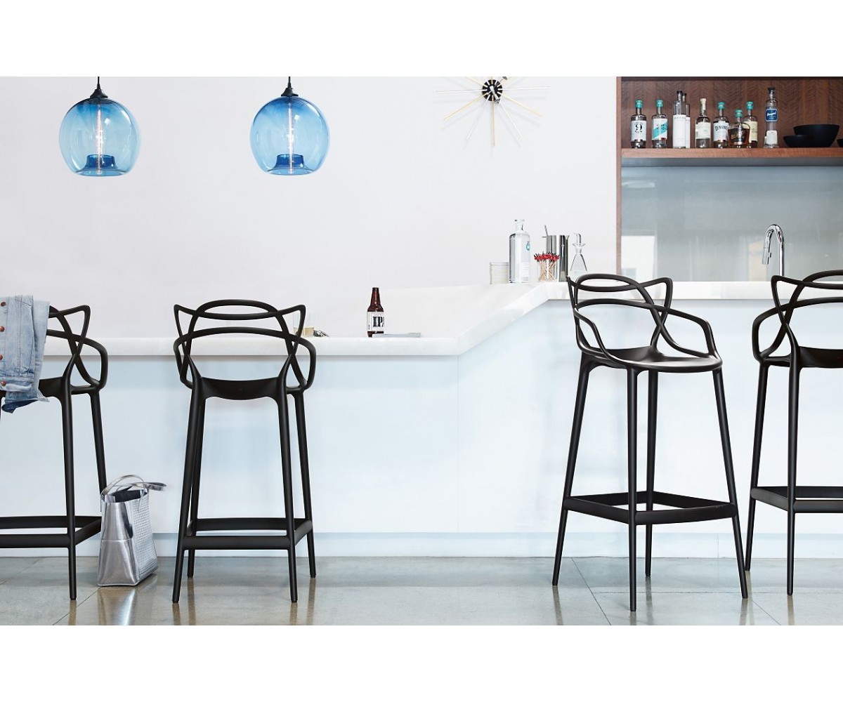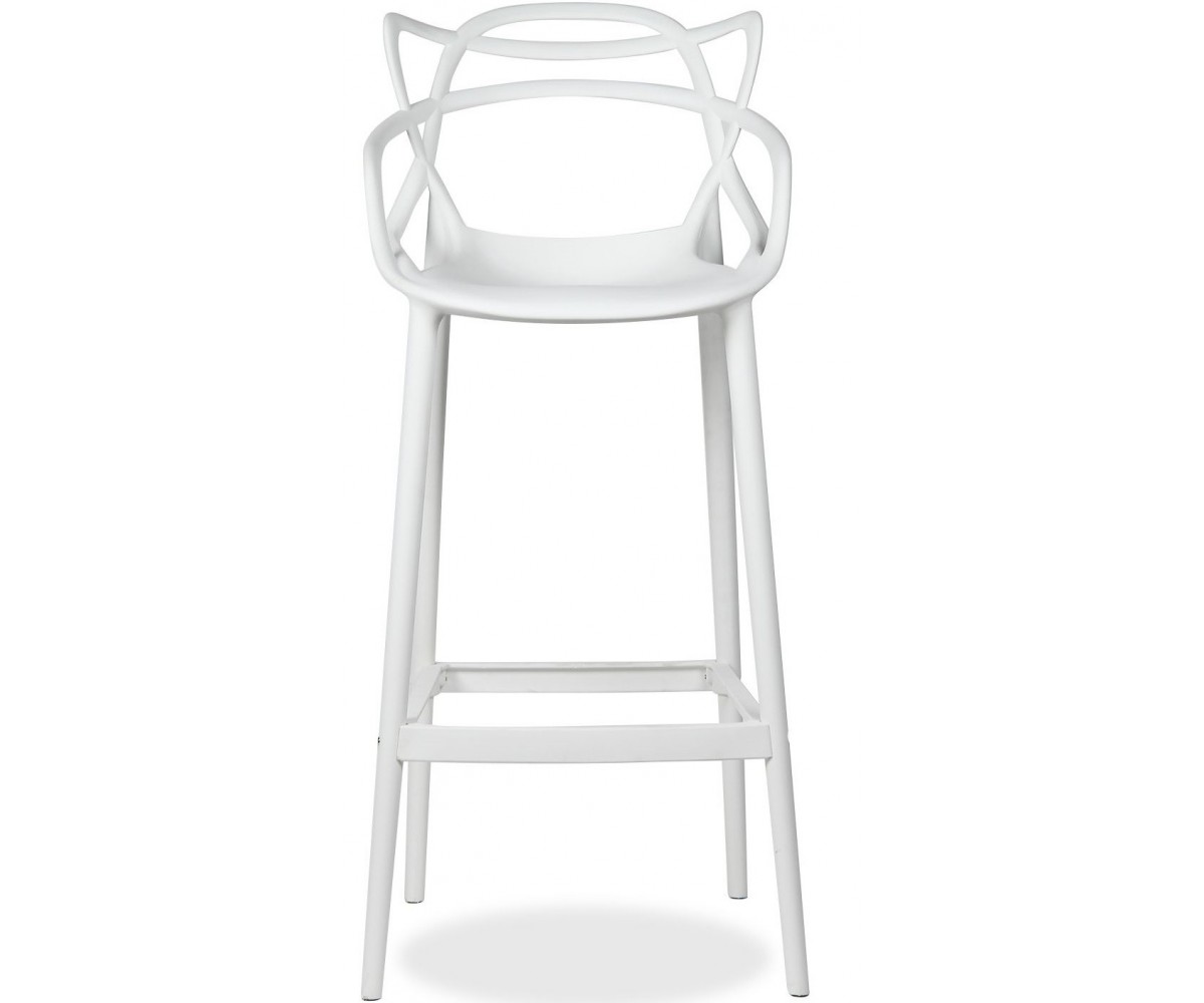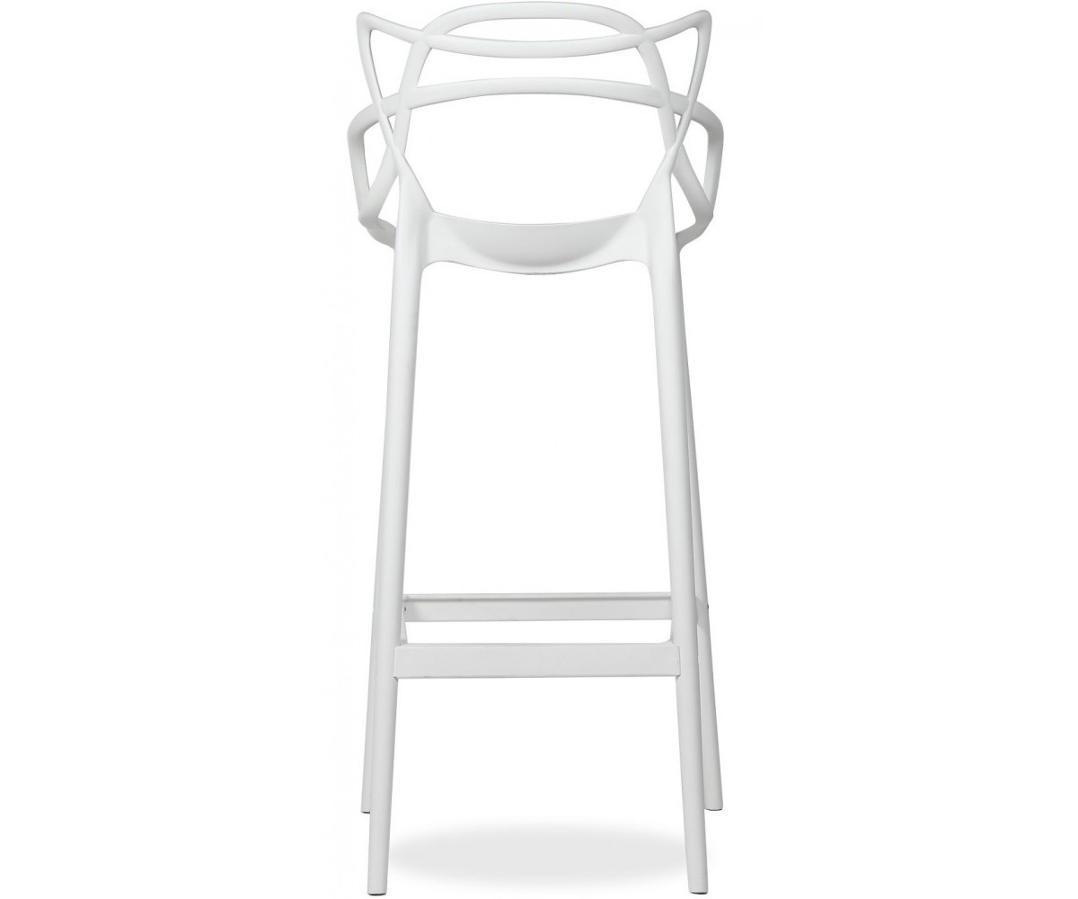 Taburete alto inspirada en un diseño de Philippe Starck. Fabricada en fibra de vidrio y polipropileno de gran dureza , modelo no apilable, terminación en blanco o negro. Ideal para interior y exterior. Réplica exacta con materiales originales de máxima calidad.