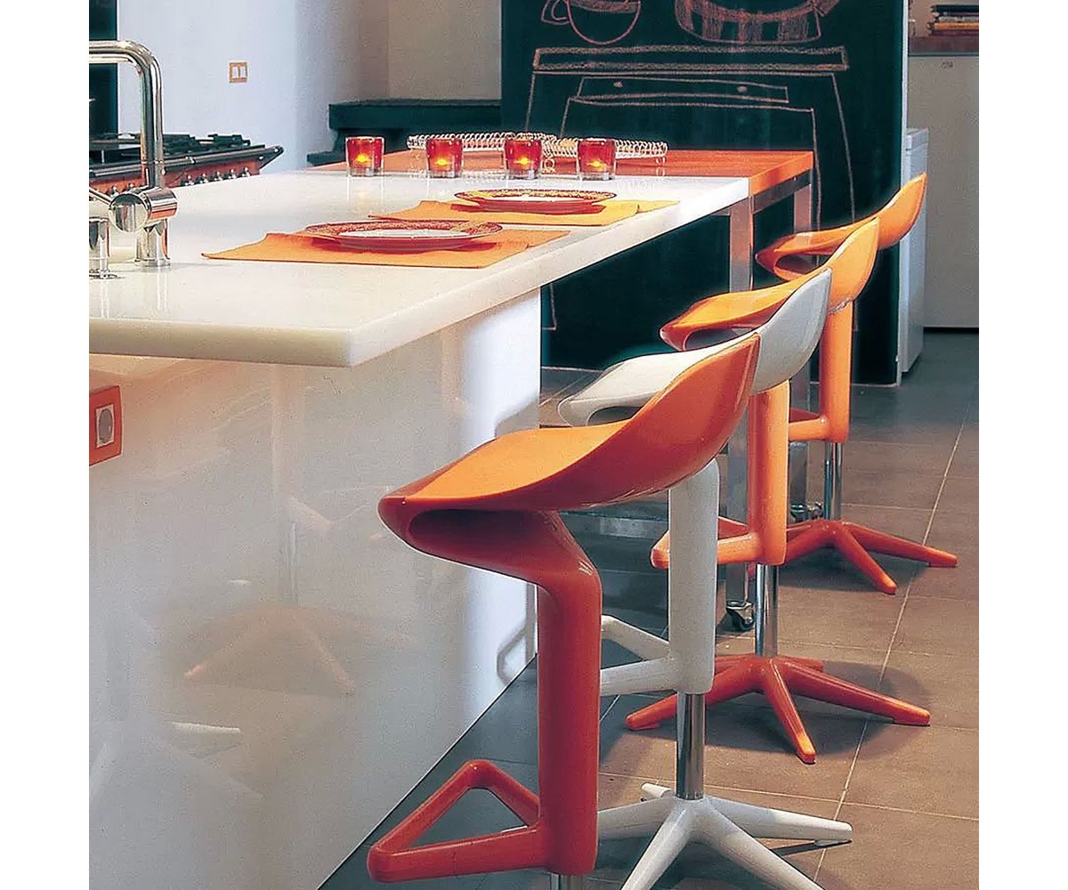 Taburete regulable en altura, inspirado en un diseño de Antonio Citterio. Fabricado en acero y polipropileno inyectado color rojo, regulable en altura mediante sistema de gas. Réplica exacta con materiales originales de máxima calidad.