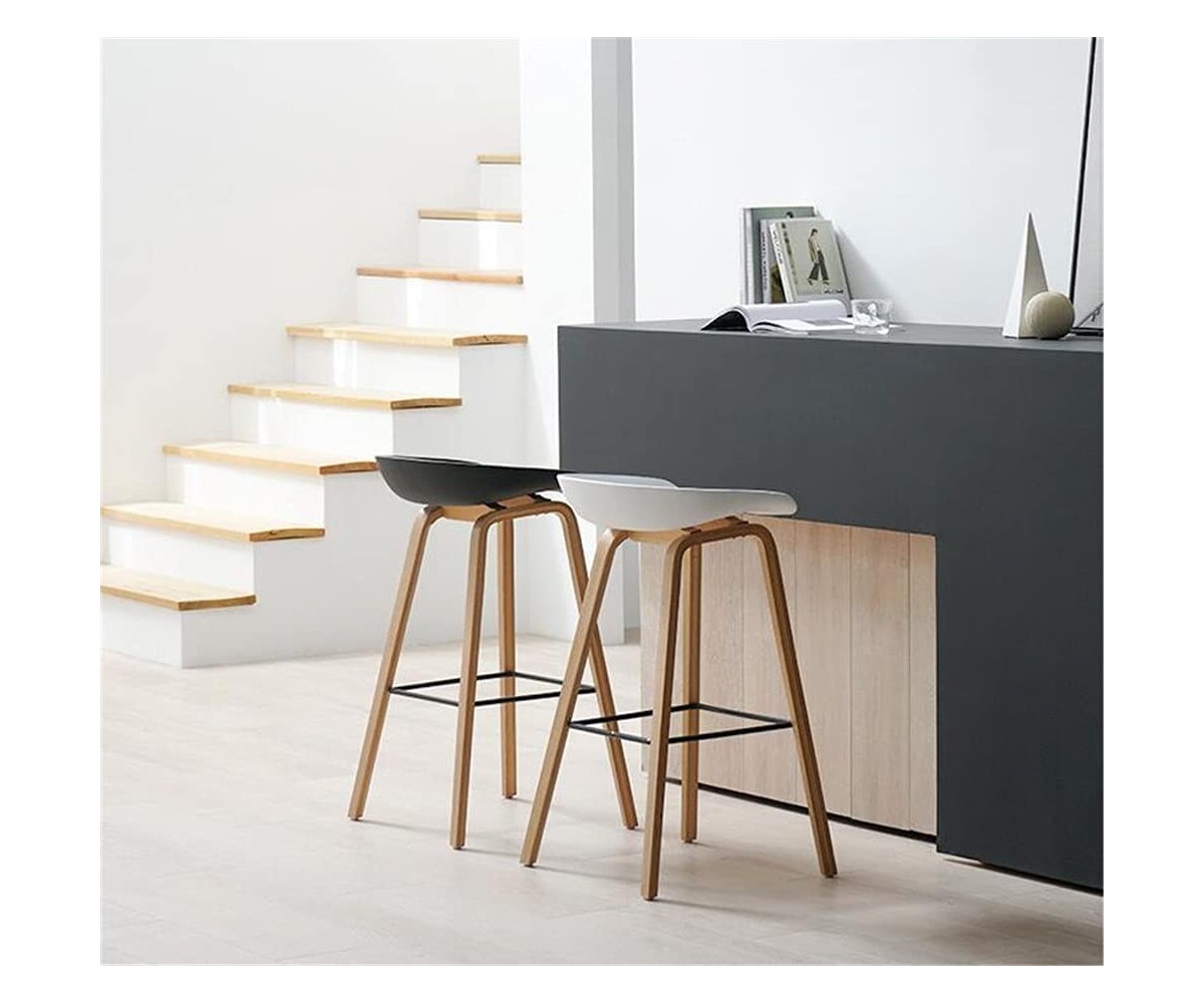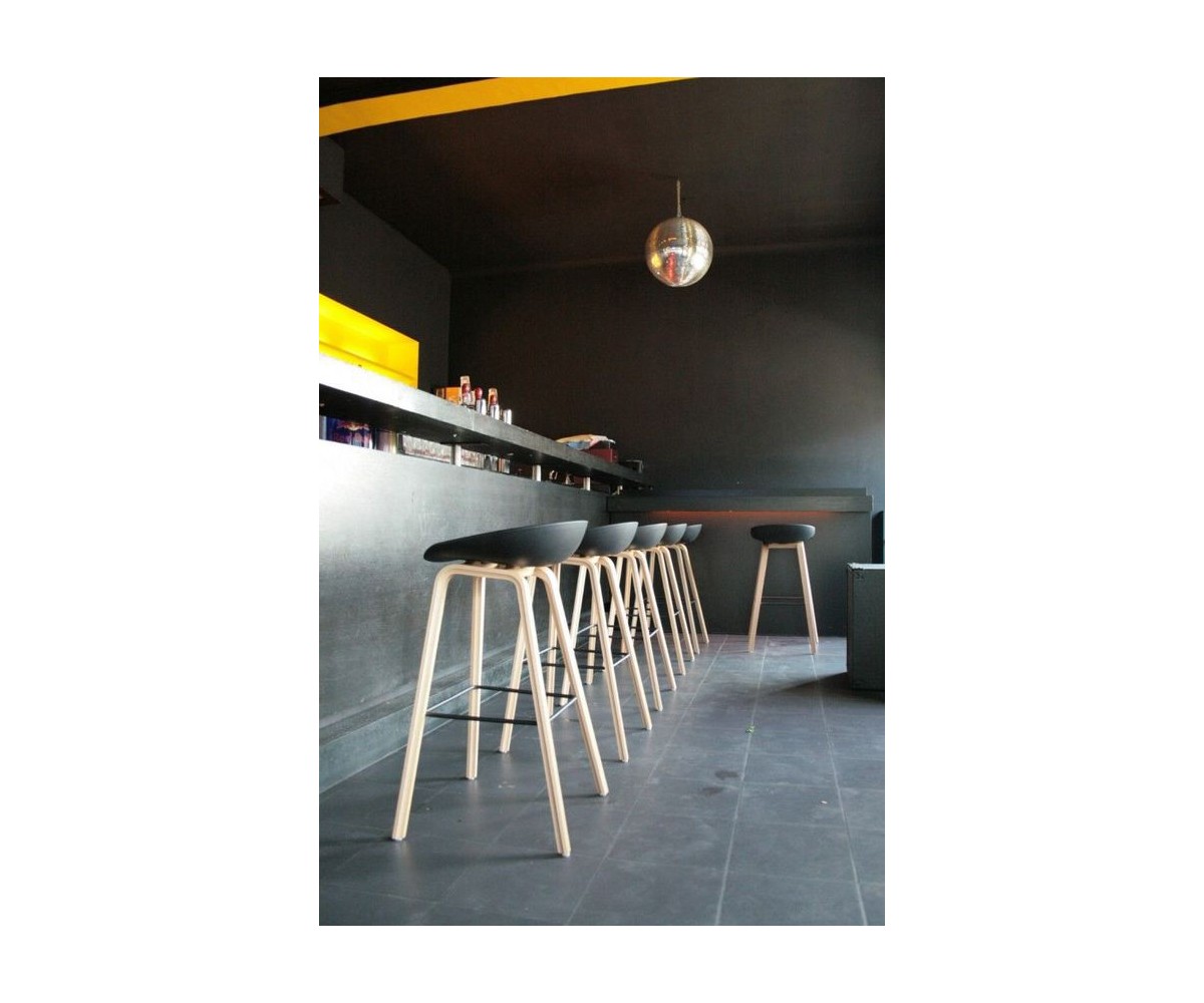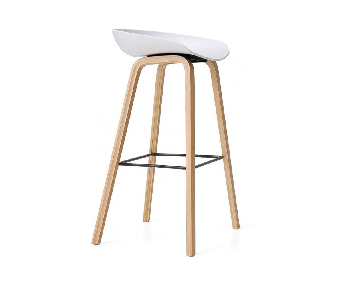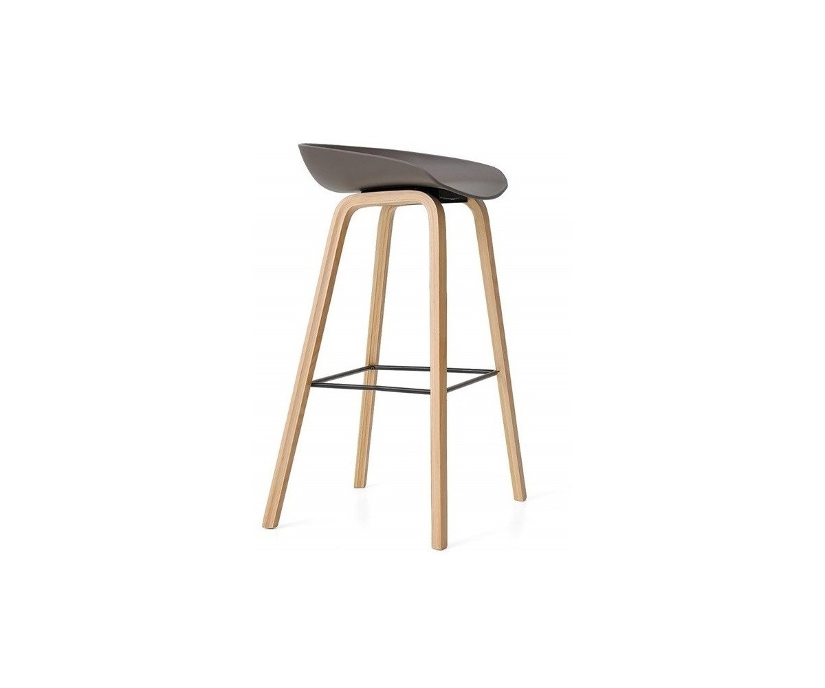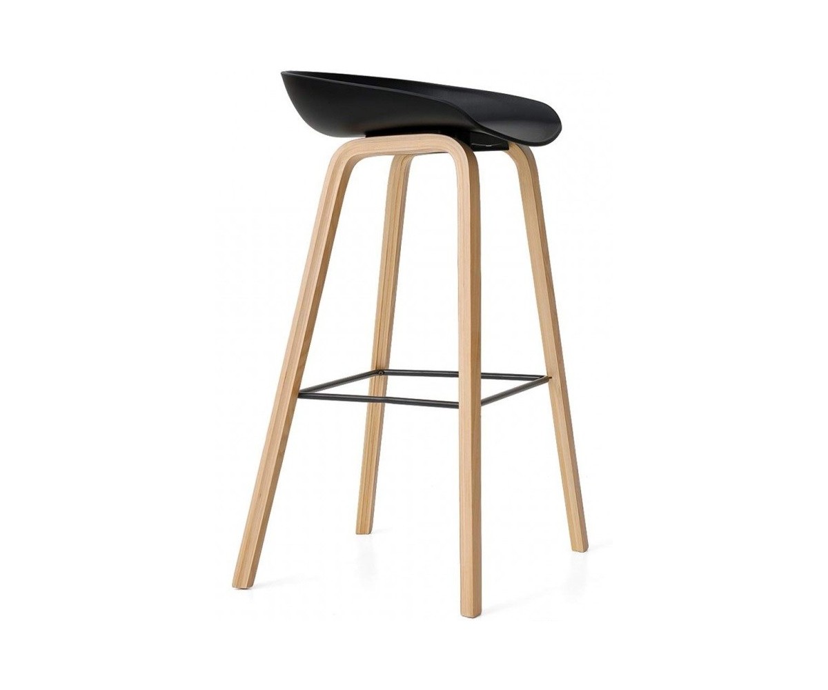 Taburete alto, inspirado en un diseño de Hee Welling. Estructura fabricada en acero terminación madera haya con reposapies tubular lacado en color negro. Asiento en polipropileno de gran dureza en color negro, blanco y marrón. Disponible en otras terminaciones y colores. Réplica exacta con materiales originales de máxima calidad.