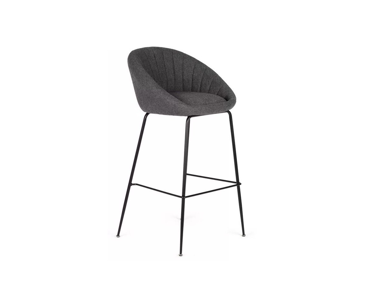 Taburete alto estilo Soho House, inspirado en un diseño de Emmanuel Gallina. Estructura en acero triple lacado color negro y asiento en un suave textil gris marengo, modelo desenfundable y con taco regulable en la pata. Réplica exacta con materiales originales de máxima calidad.