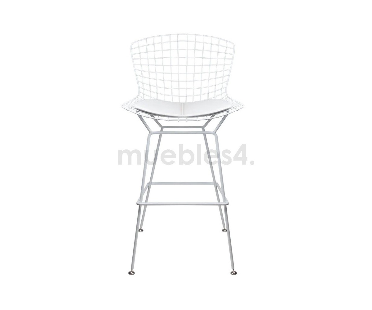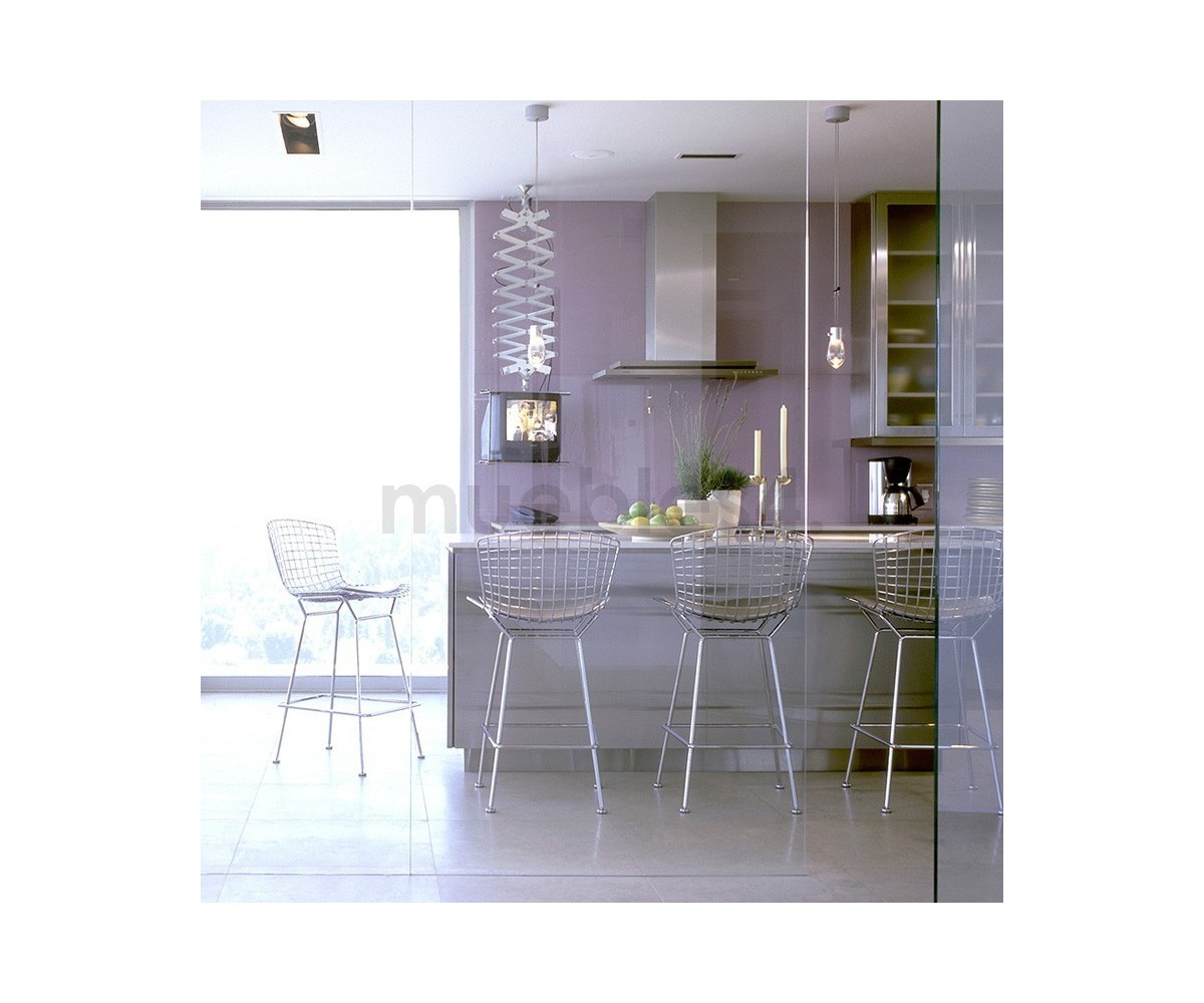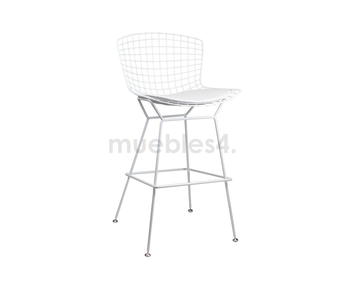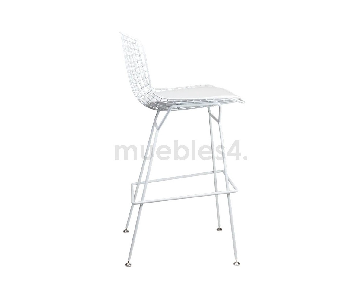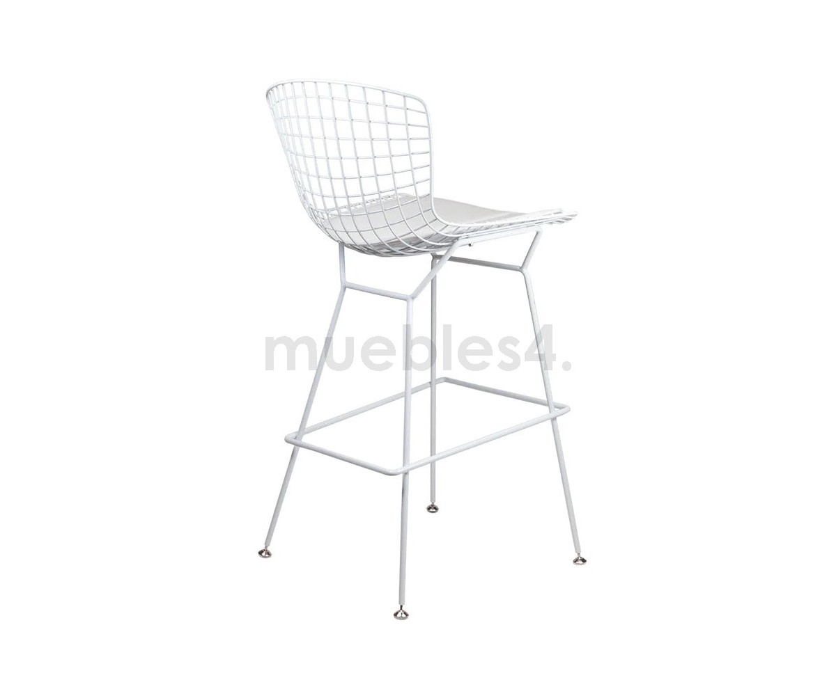 Taburete alto inspirado en un diseño de Harry Bertoia. Elemento innovador, cómodo y sorprendentemente hermoso, su apariencia de delicada filigrana contrasta con su resistencia y durabilidad.