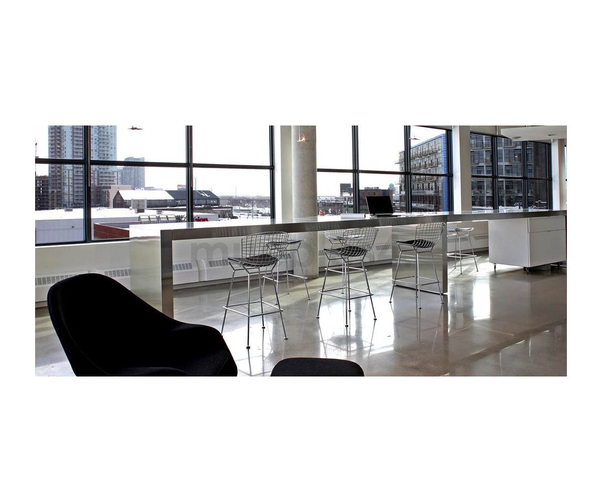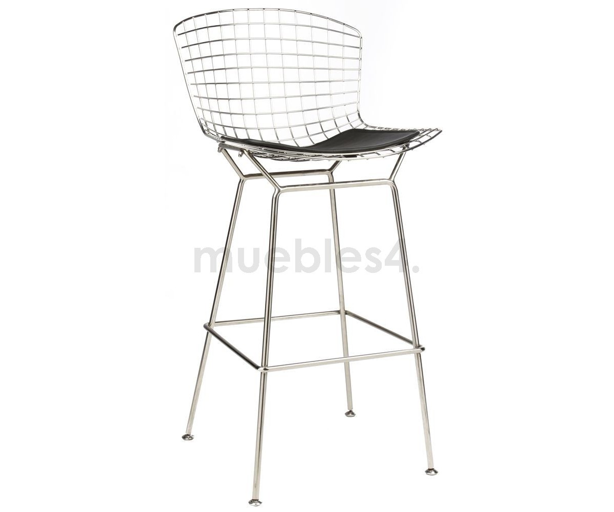 Taburete alto inspirado en un diseño de Harry Bertoia. Elemento innovador, cómodo y sorprendentemente hermoso, su apariencia de delicada filigrana contrasta con su resistencia y durabilidad.