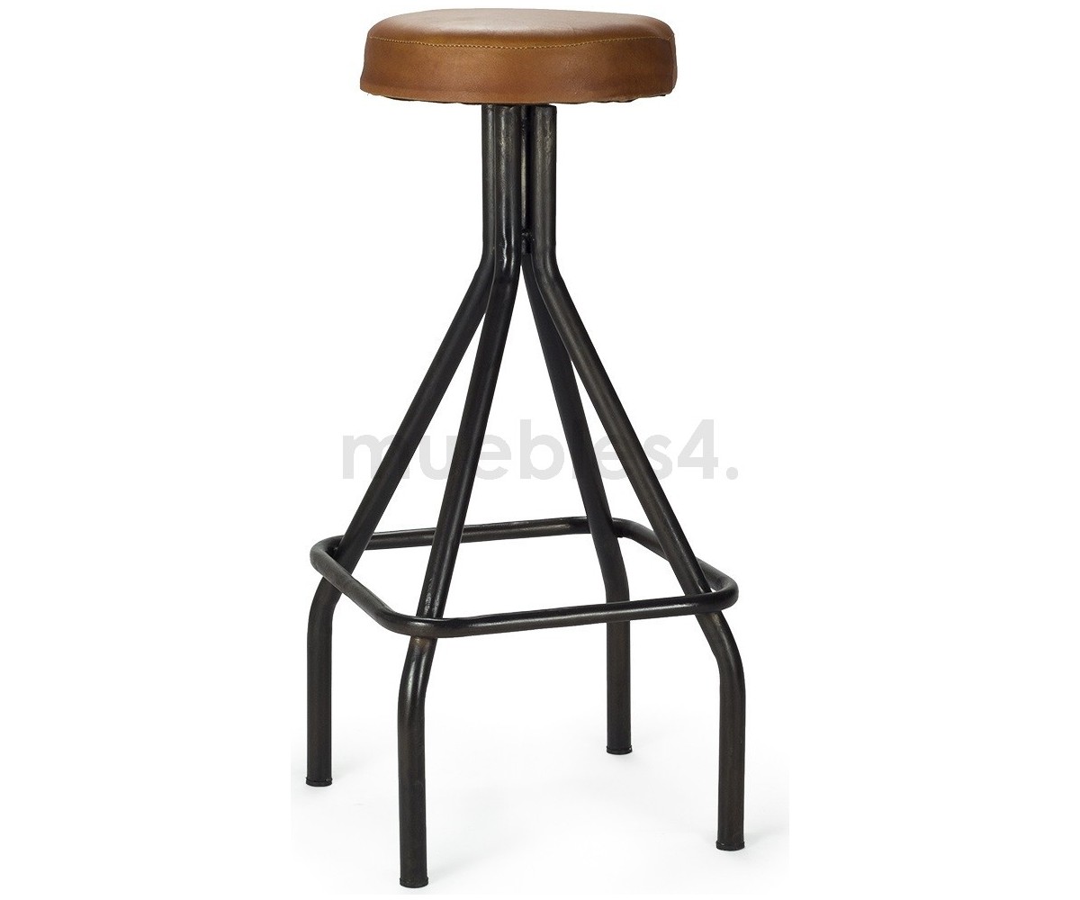 Taburete vintage alto, estructura fabricada en acero color negro industrial, asiento circular relleno de espuma de poliuretano y tapizado en piel. Réplica exacta con materiales originales de máxima calidad.