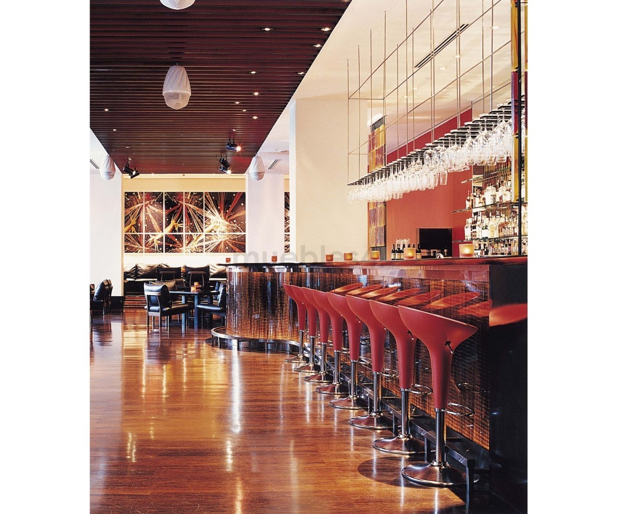 Taburete alto, inspirado en un diseño de Stefano Giovannoni. Fabricado en polipropileno y acero, regulable en altura desde 56cm hasta 79cm., giratorio. La base circular tiene una medida da 40cm. Disponible en color blanco, negro, gris, naranja y violeta. Réplica exacta con materiales originales de máxima calidad.