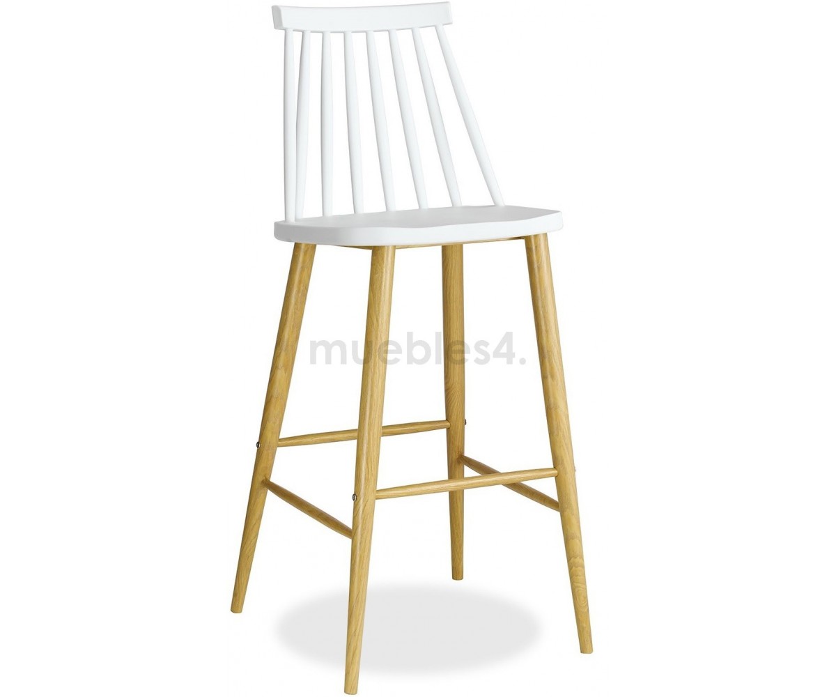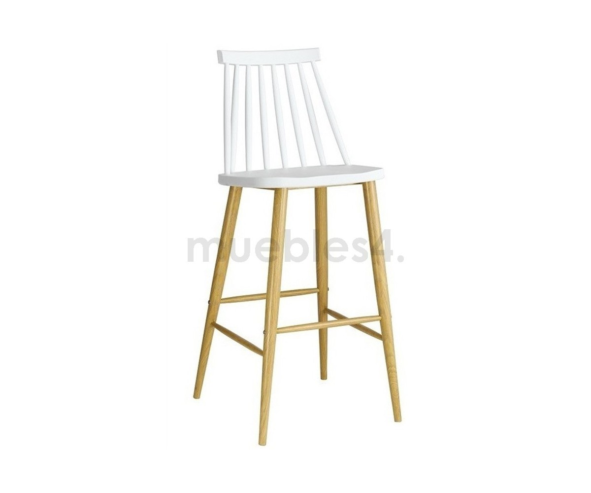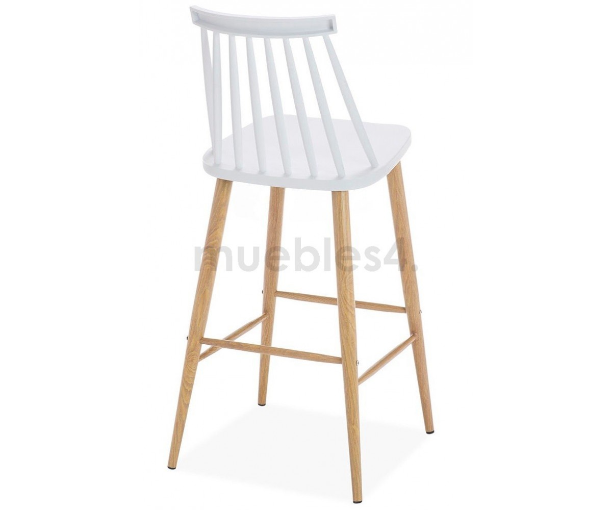 Taburete mediano inspirado en un diseño de Riki Watanabe. Base de metal con acabado imitación madera, asiento y respaldo de polipropileno inyectado en color blanco. Réplica exacta con materiales originales de máxima calidad.